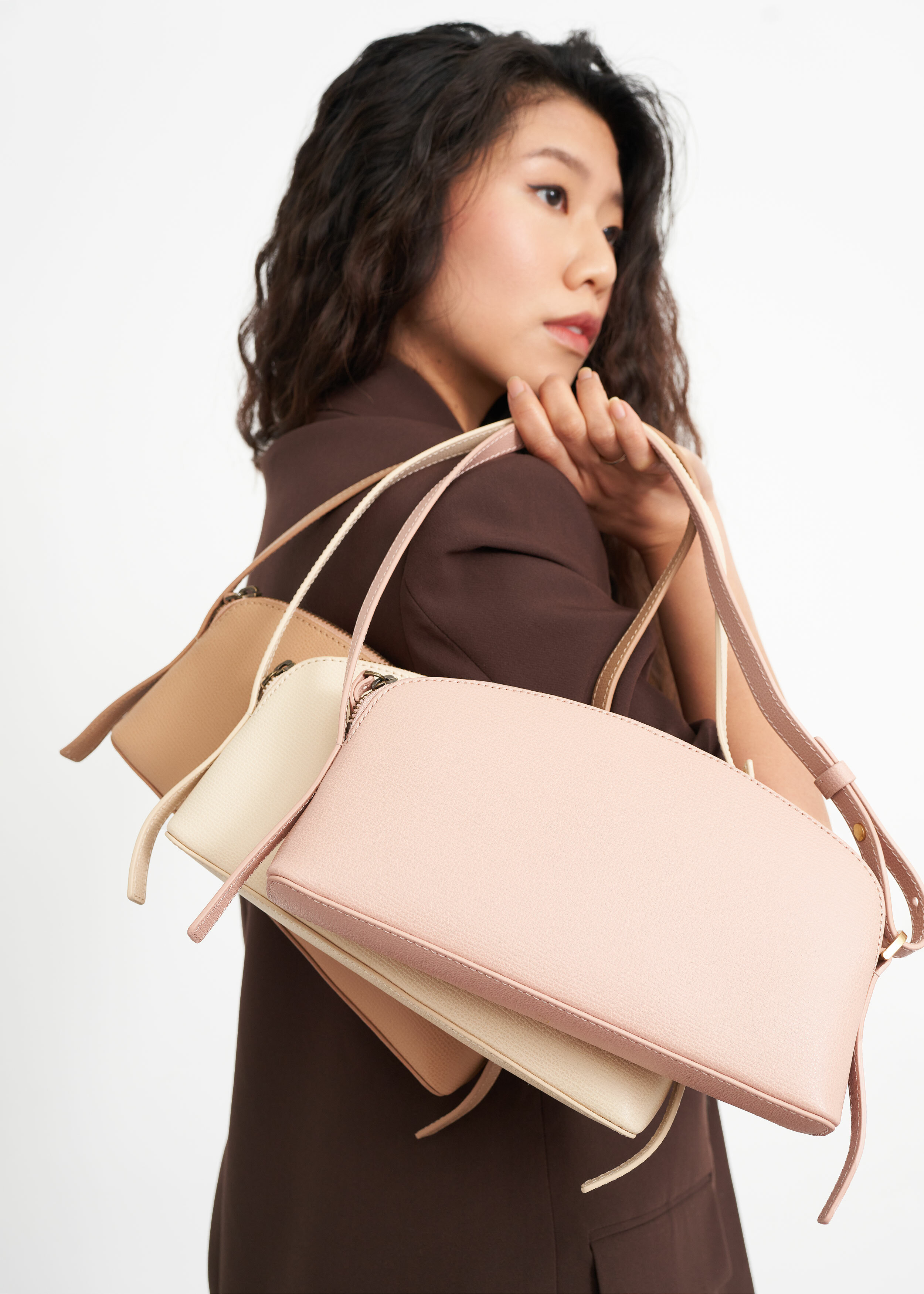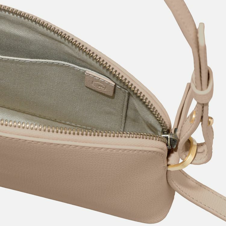 - 採用 Crumbs Leather 壓紋皮革,搭配布質內襯