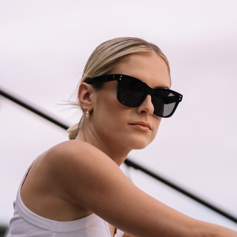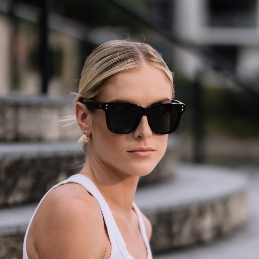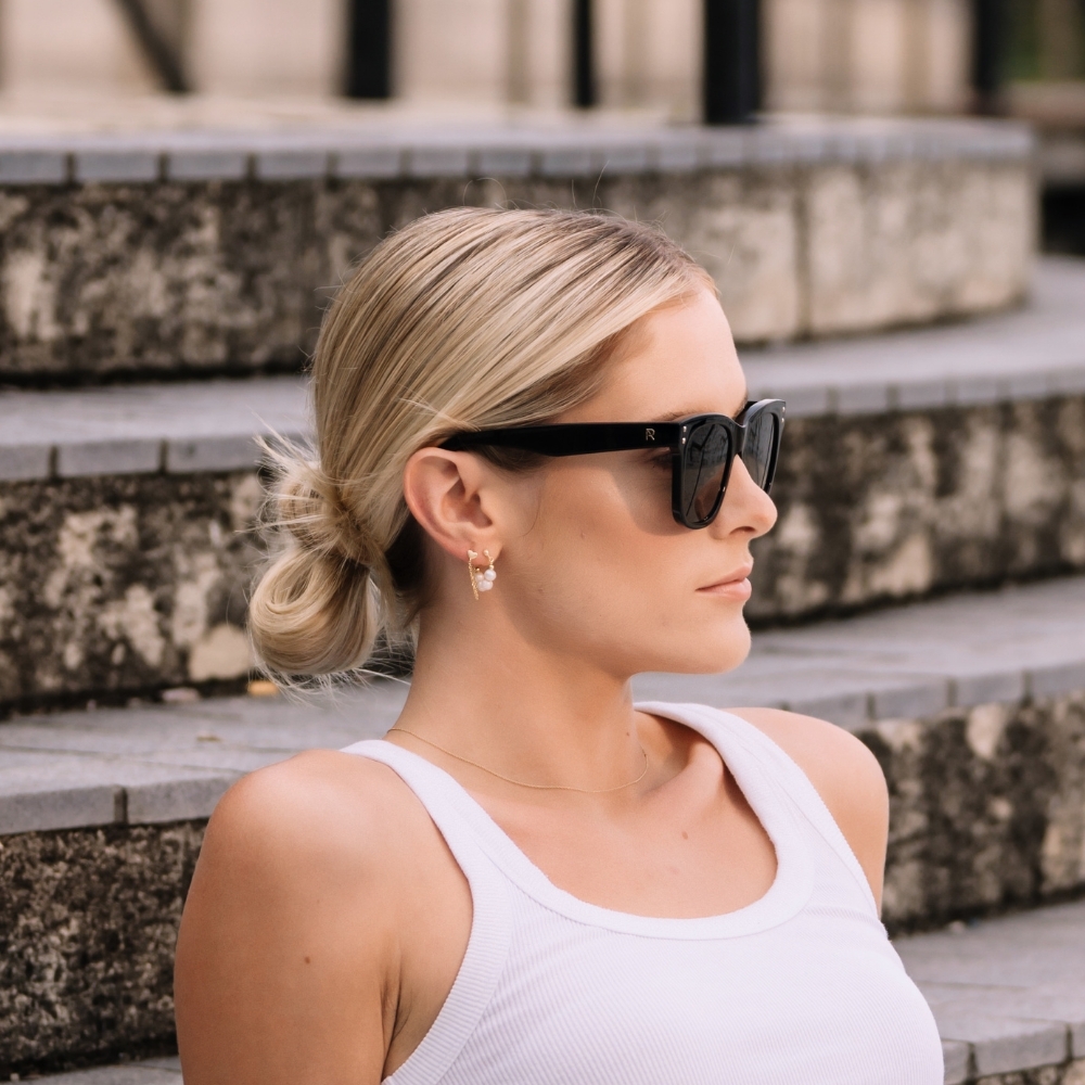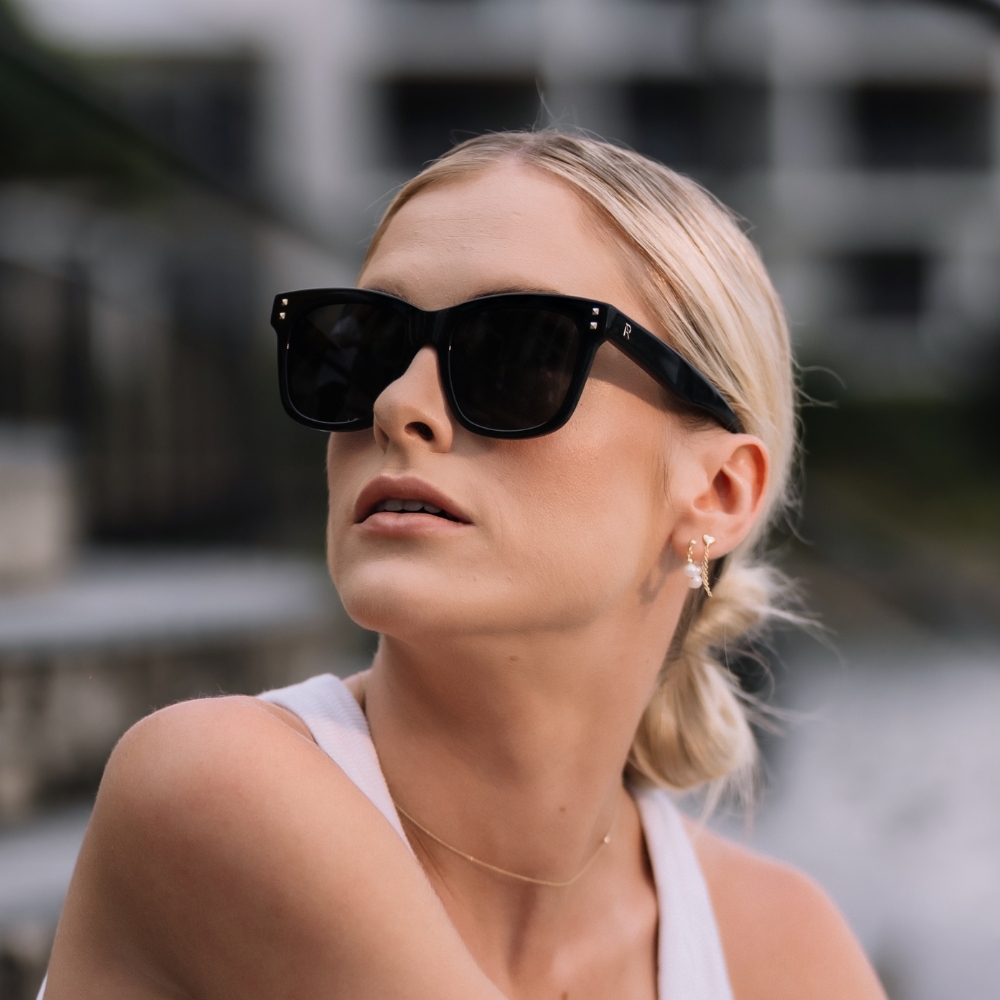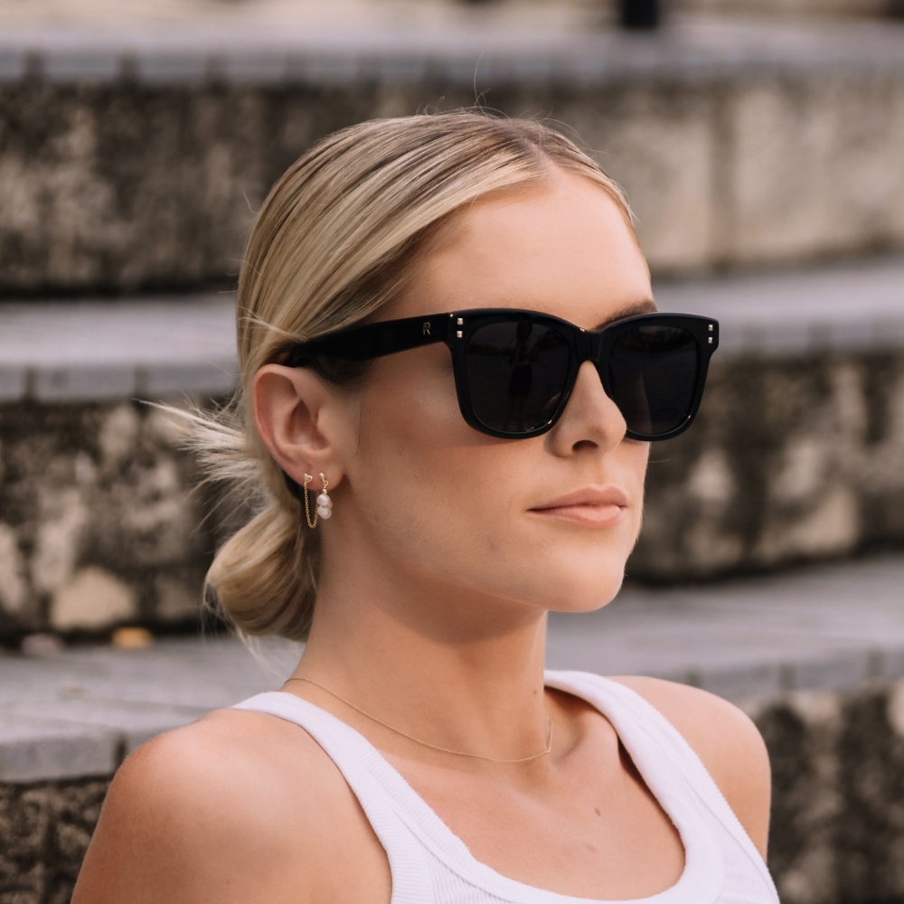 鏡腳外側綴有金色R圖案,極具奢華感。