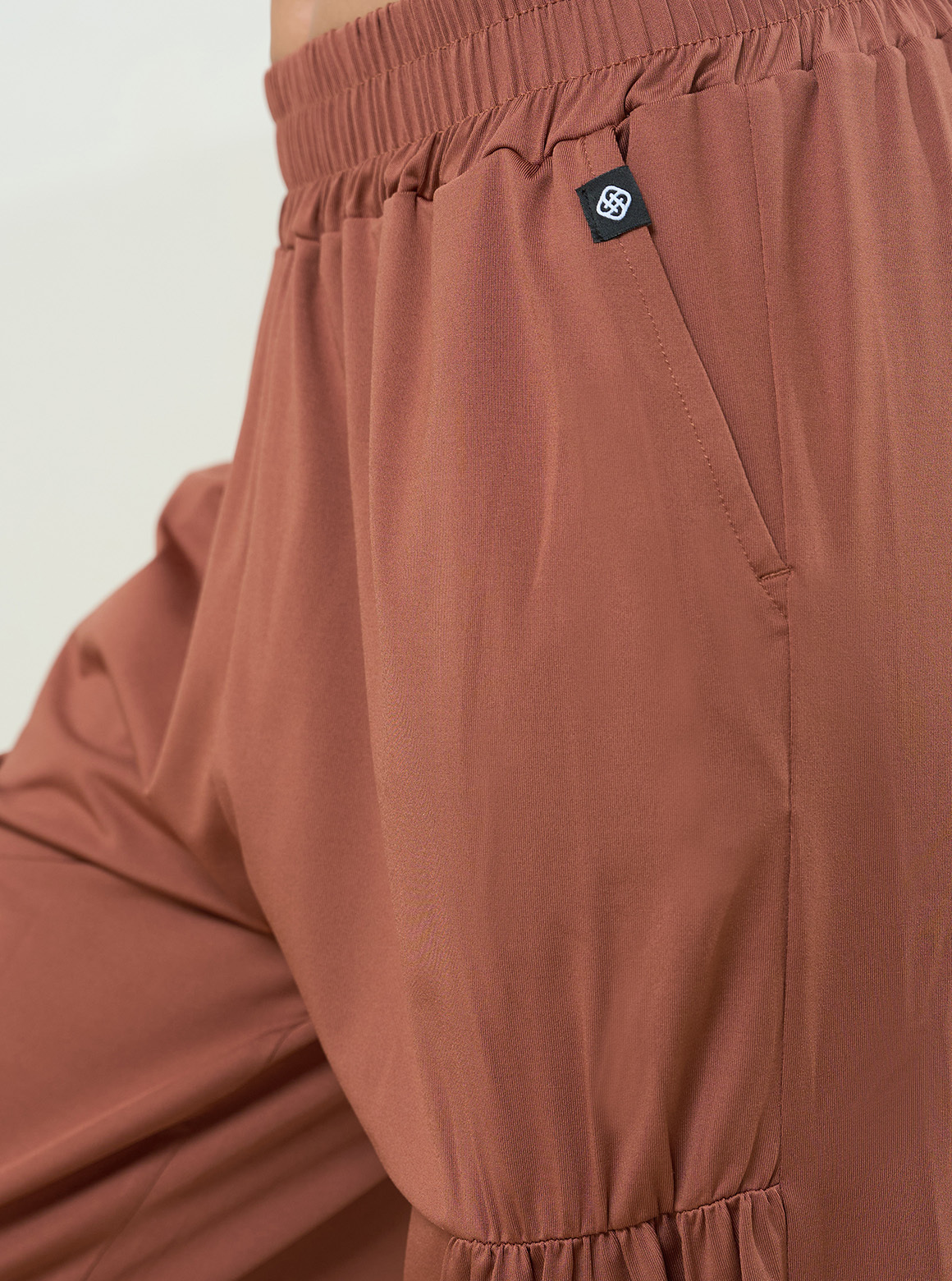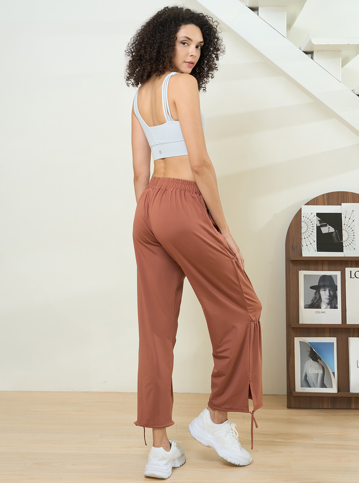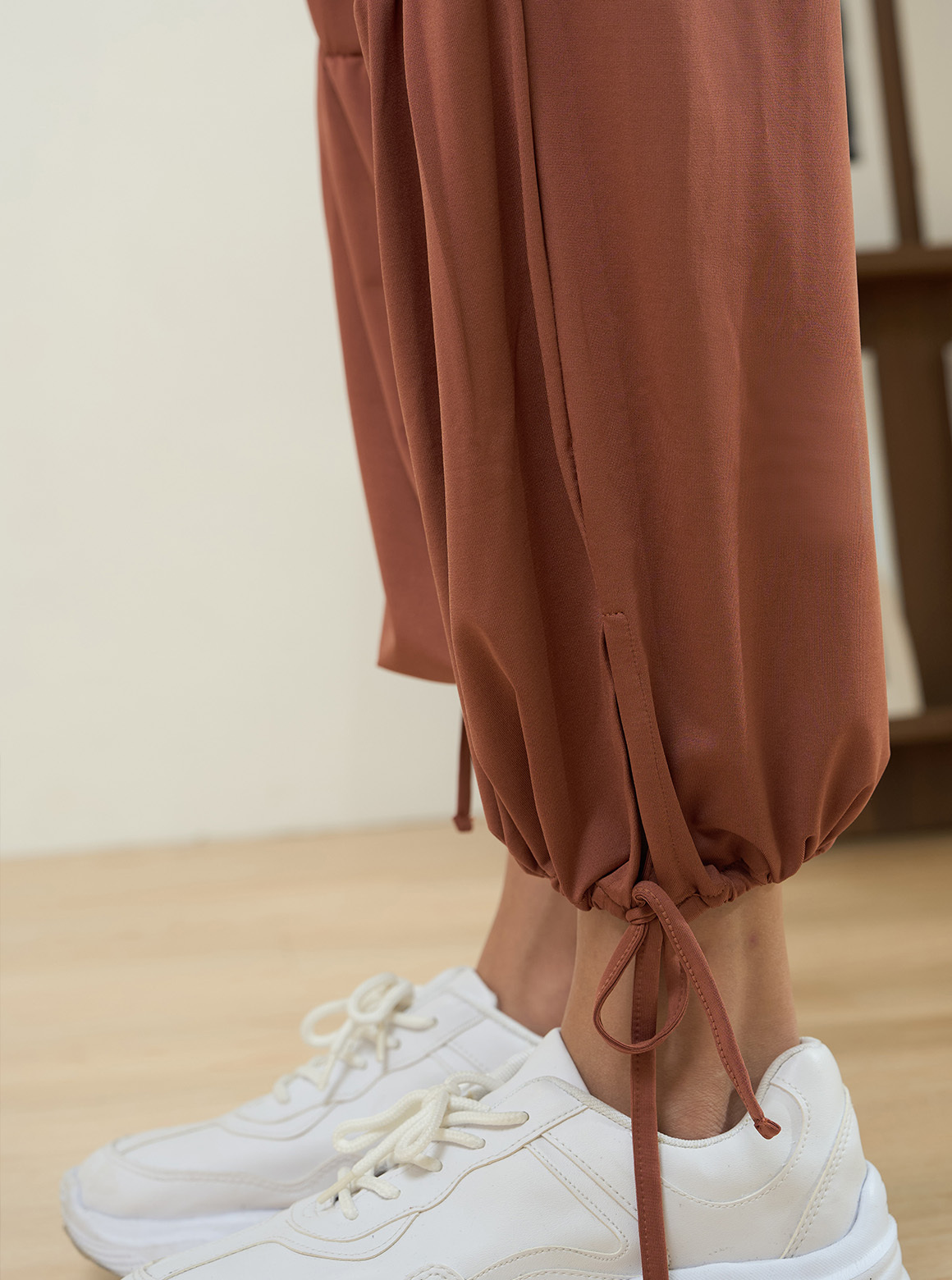 休閒系列寬褲,輕軟舒彈布料呈現自然垂度,走動時輕盈貼合肌膚;寬褲細緻抽褶設計,視覺集中修飾直腿線條,腰部採整圈鬆緊腰頭,雙線爬線避免內捲, 版型身形包容度高。設有兩種褲長可一褲兩穿,褲口內有隱藏式抽繩,可落地亦可束口穿著 ,為嬌小到高個女孩增加穿搭變化