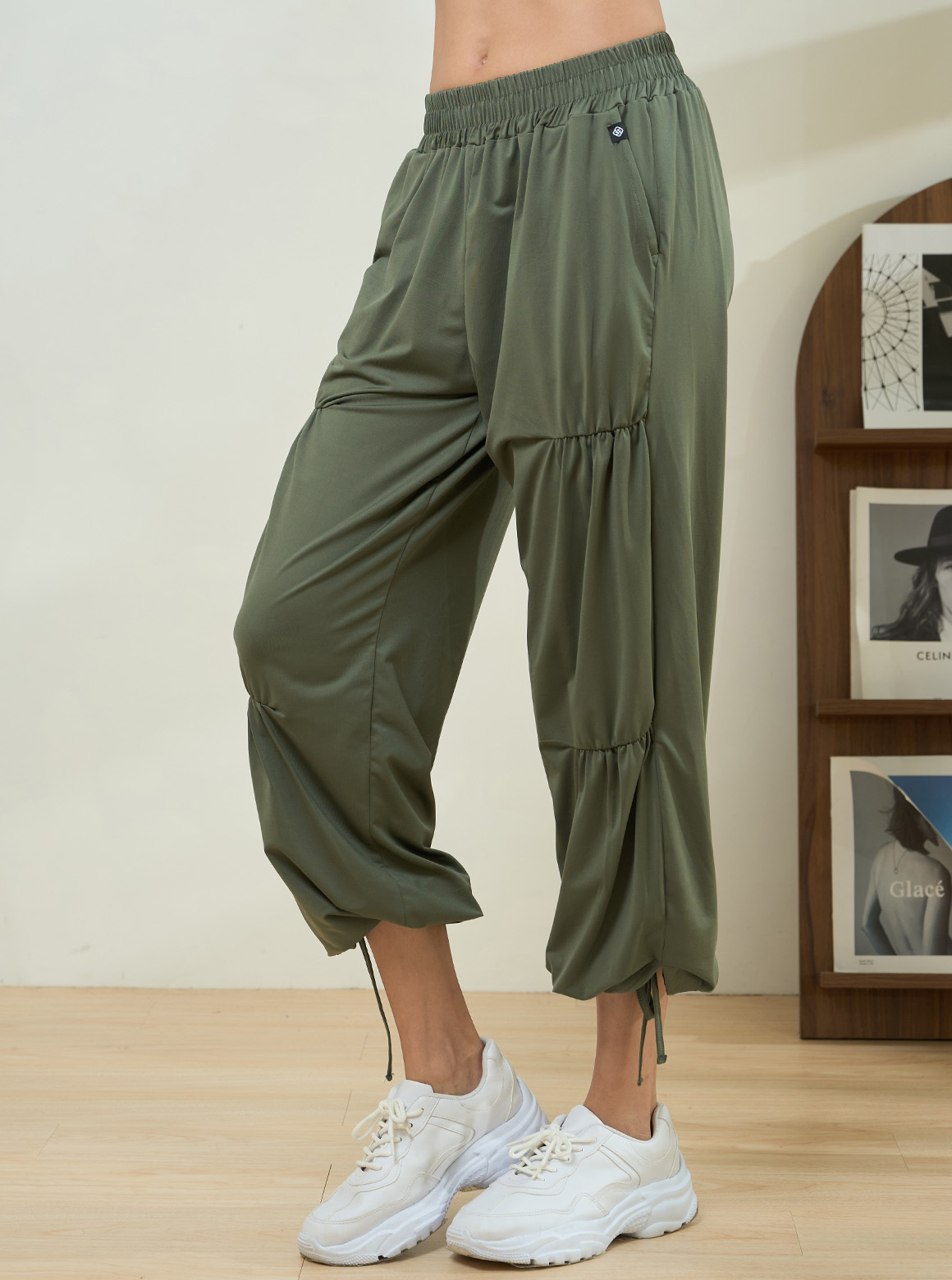 休閒系列寬褲,輕軟舒彈布料呈現自然垂度,走動時輕盈貼合肌膚;寬褲細緻抽褶設計,視覺集中修飾直腿線條,腰部採整圈鬆緊腰頭,雙線爬線避免內捲, 版型身形包容度高。設有兩種褲長可一褲兩穿,褲口內有隱藏式抽繩,可落地亦可束口穿著 ,為嬌小到高個女孩增加穿搭變化