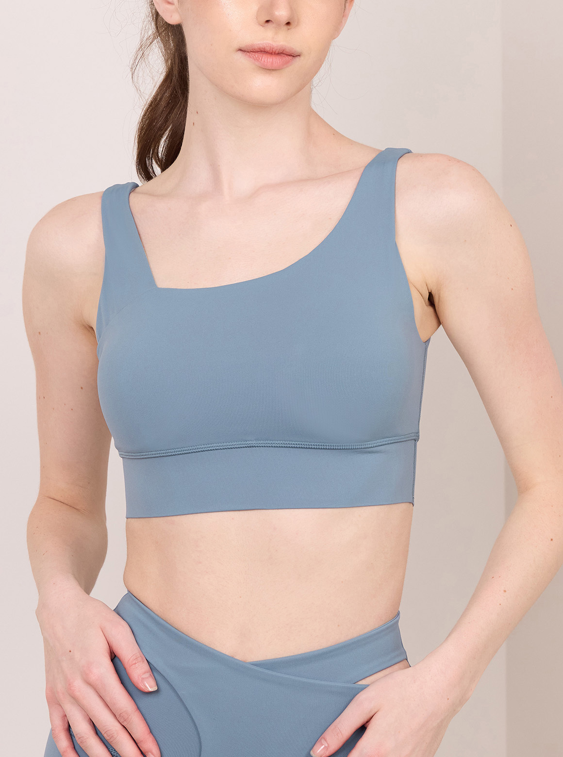 S2N全面升級款式PURE HEART純心悠然短上衣,冰感柔彈質感面料,零著感穿著輕盈舒適無束縛,穩定寬肩帶設計搭配單肩圓潤感細彈肩帶,打造俐落且獨具特色造型,不對襯設計展露肩頸纖細視覺比例;另開發黑科技多層加壓環塑科技,讓運內下擺牢牢固定,加強防捲起皺效果,高彈性彈力穿脫無負擔同時達到收復修飾效果。可日常單穿,亦可搭配各式西外、襯衫,輕鬆展現運動與時裝完美結合
