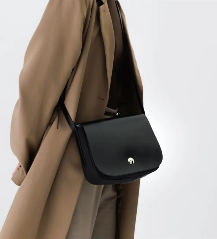 以圓弧流線形塑經典馬鞍剪裁,金屬銀釦點綴品牌logo,擁有獨特氣質的個性單品。