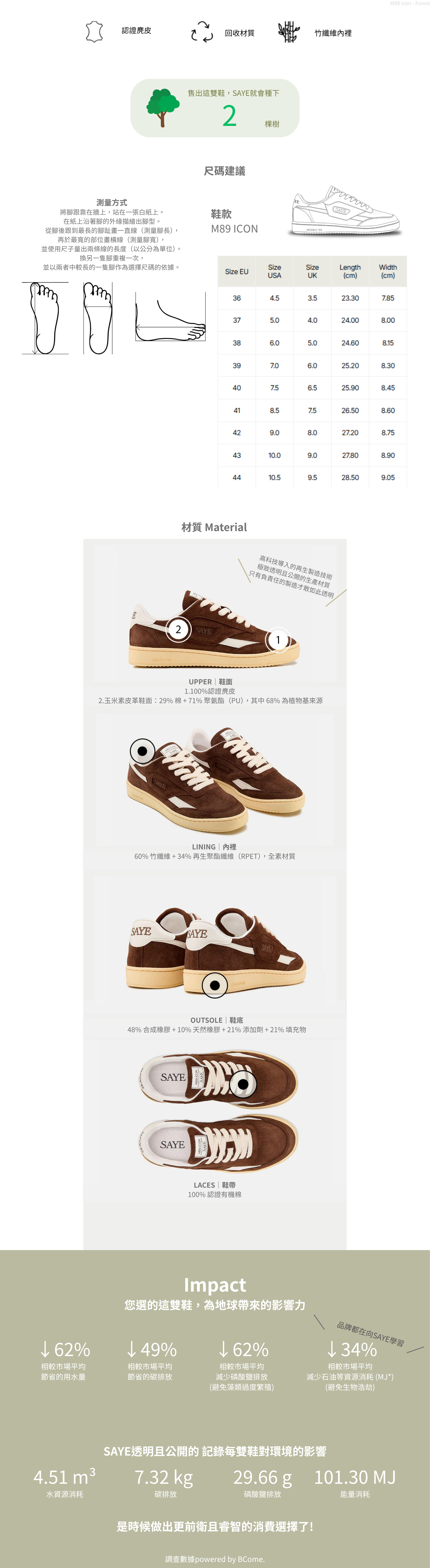 • 永續承諾: 每售出一雙球鞋,SAYE將資助種植兩棵樹