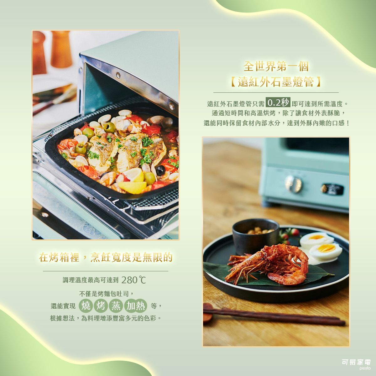 3. 採世界首創遠紅外石墨燈管,可達280度超高溫(搭配專屬烤盤可達330度高溫)