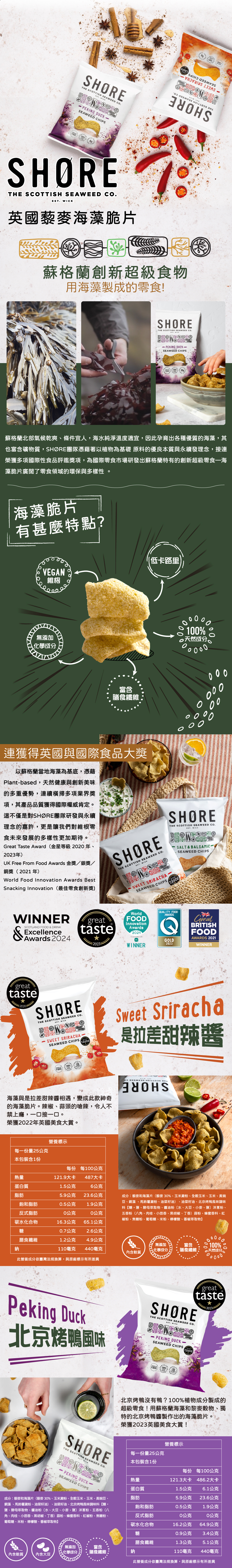 SHØRE團隊研發的創新超級零食,來自蘇格蘭北部清澈純淨海域的海藻,將其化身為風味多元、健康又美味的超級零食。