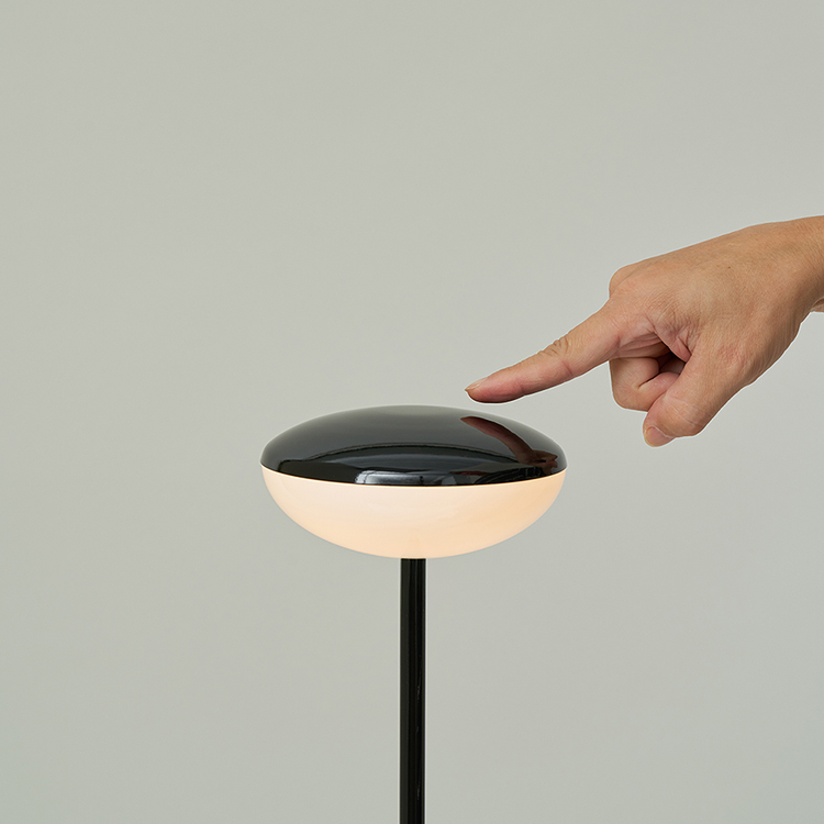 雖是移動燈具,Pinot Floor隨附的USB-C充電線,線長和一般標準立燈電源線的長度相同,若你為Pinot Floor在家居生活裡,找到了能長久安置的角落,它也可以作為一般立燈使用。整個金屬燈罩都是三段觸摸開關的一部分,不讓突兀的開關影響整體造型。