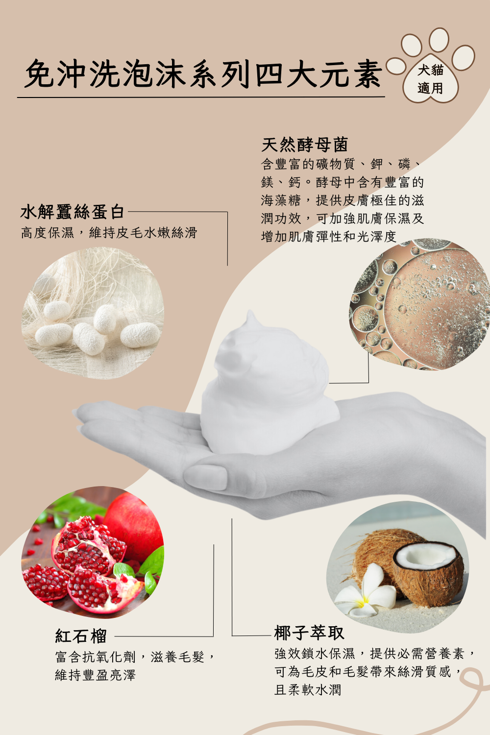 ✔免水洗配方,適合旅行、術後、天冷或怕水的貓咪