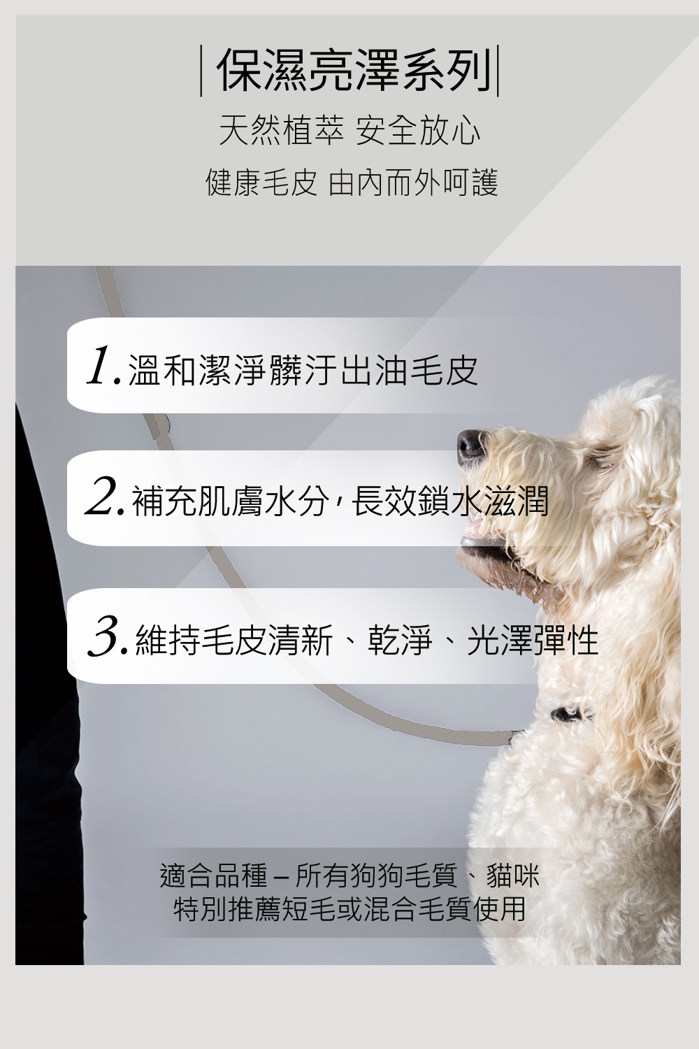 ⚫️保濕亮澤洗毛精 : 清新海洋香,清爽、保濕、油水平衡,溫和潔淨髒污出油毛皮,補充肌膚水分,長效鎖水滋潤,維持毛皮清新、乾淨、光澤彈性