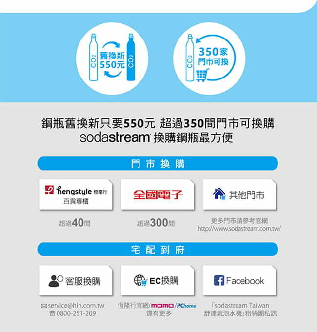 ■ sodastream鋼瓶僅適用台灣購買之氣泡水機