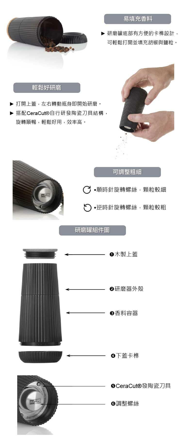 ◎獨家陶瓷刀,不生銹、耐磨,保留香料風味。