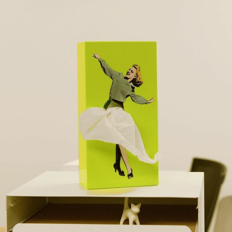 由於裙子和紙巾具有相似性,抽紙的瞬間,設計師以海報女郎脫裙子為概念設計