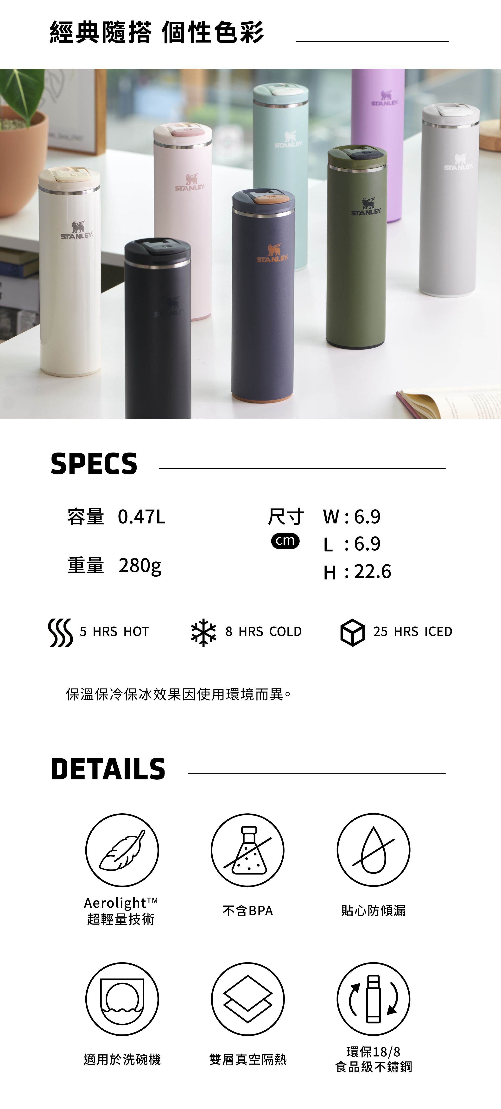 STANLEY-輕重力系列|翻蓋輕盈杯-0.47L-光澤奶油白