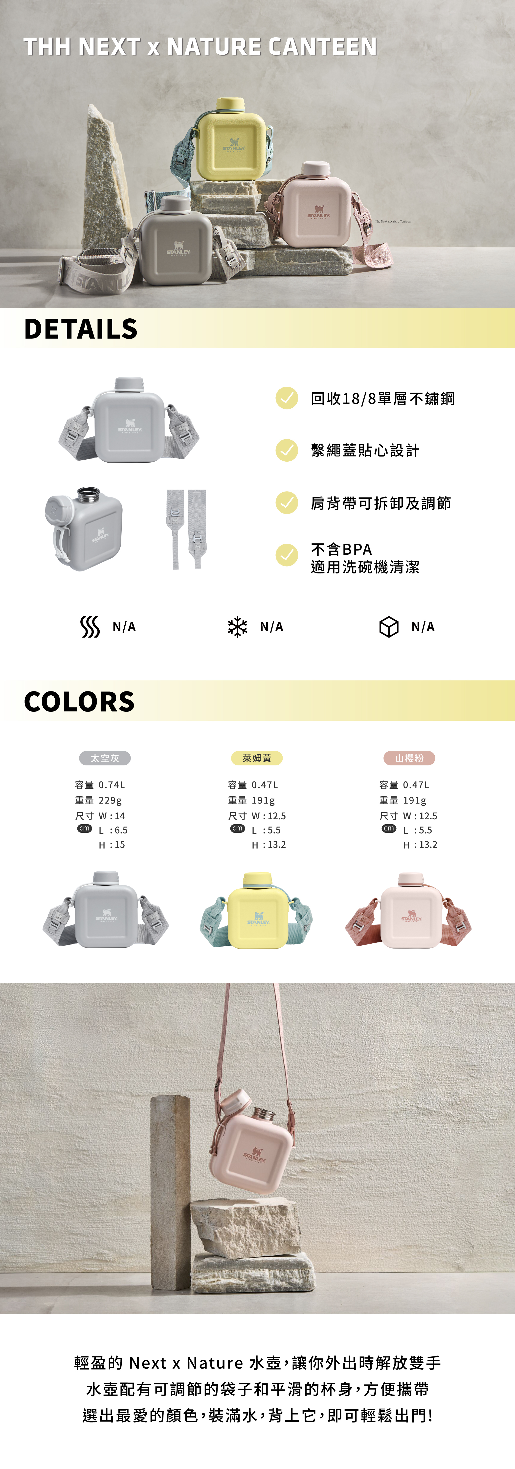 STANLEY-Next x Nature 系列|方形背帶水壺-0.47L-萊姆黃