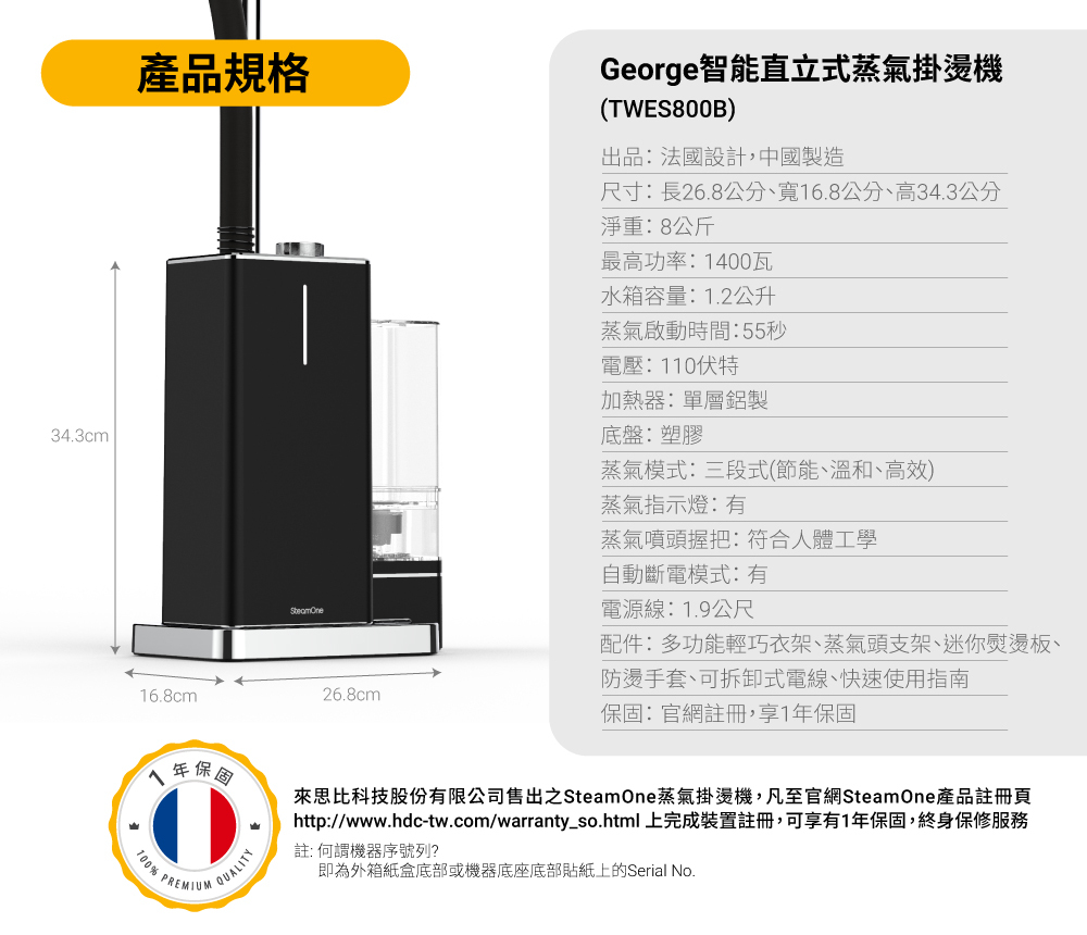 配件:多功能輕巧衣架、蒸氣頭支架、迷你熨燙板、防燙手套