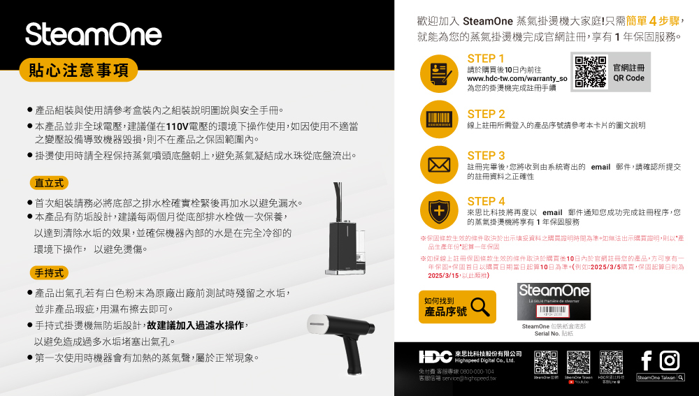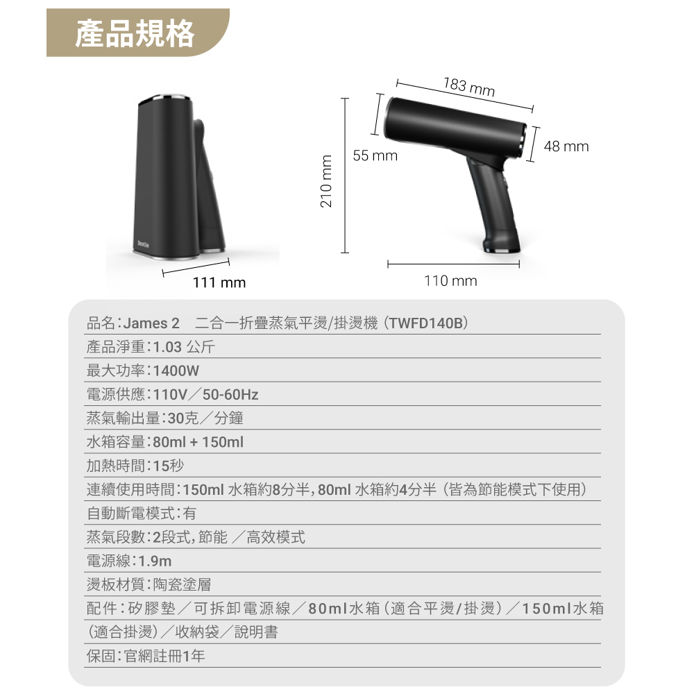 SteamOne-James2|折疊蒸氣平燙 / 掛燙機-黑