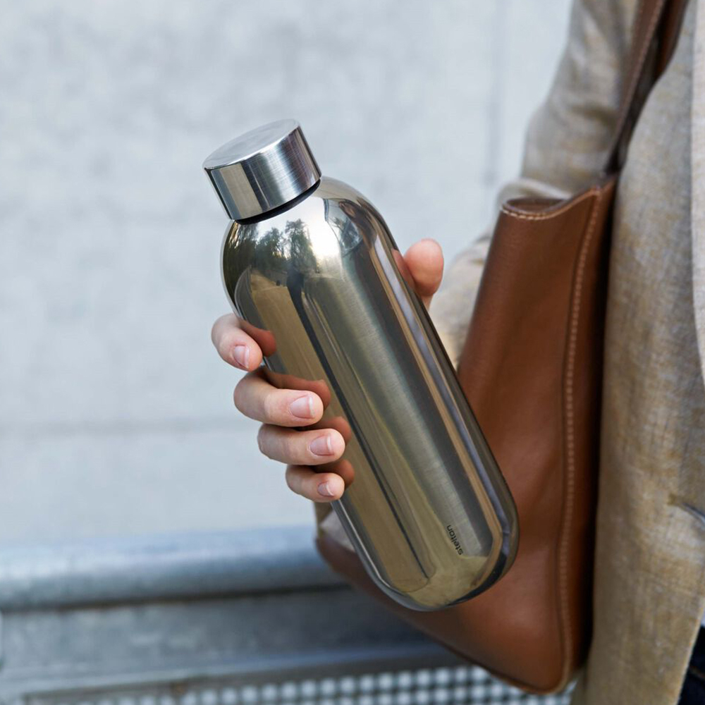 瓶身以堅固的不鏽鋼材質製成,搭配內部雙層隔熱壁設計,