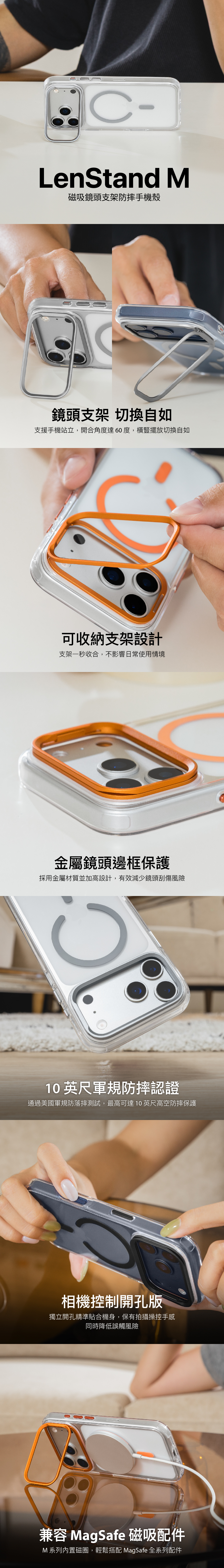 1. 鏡頭支架 切換自如:支援手機站立,開合角度達 60 度,橫豎擺放切換自如