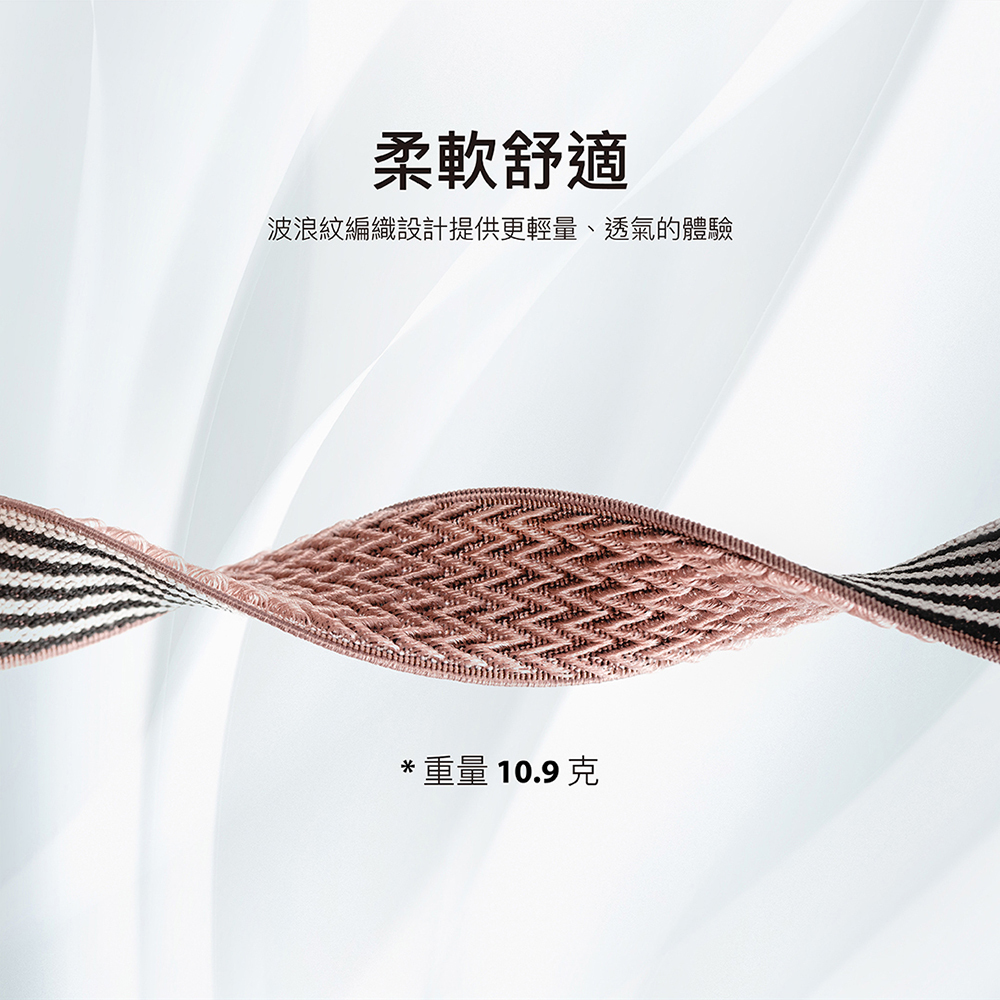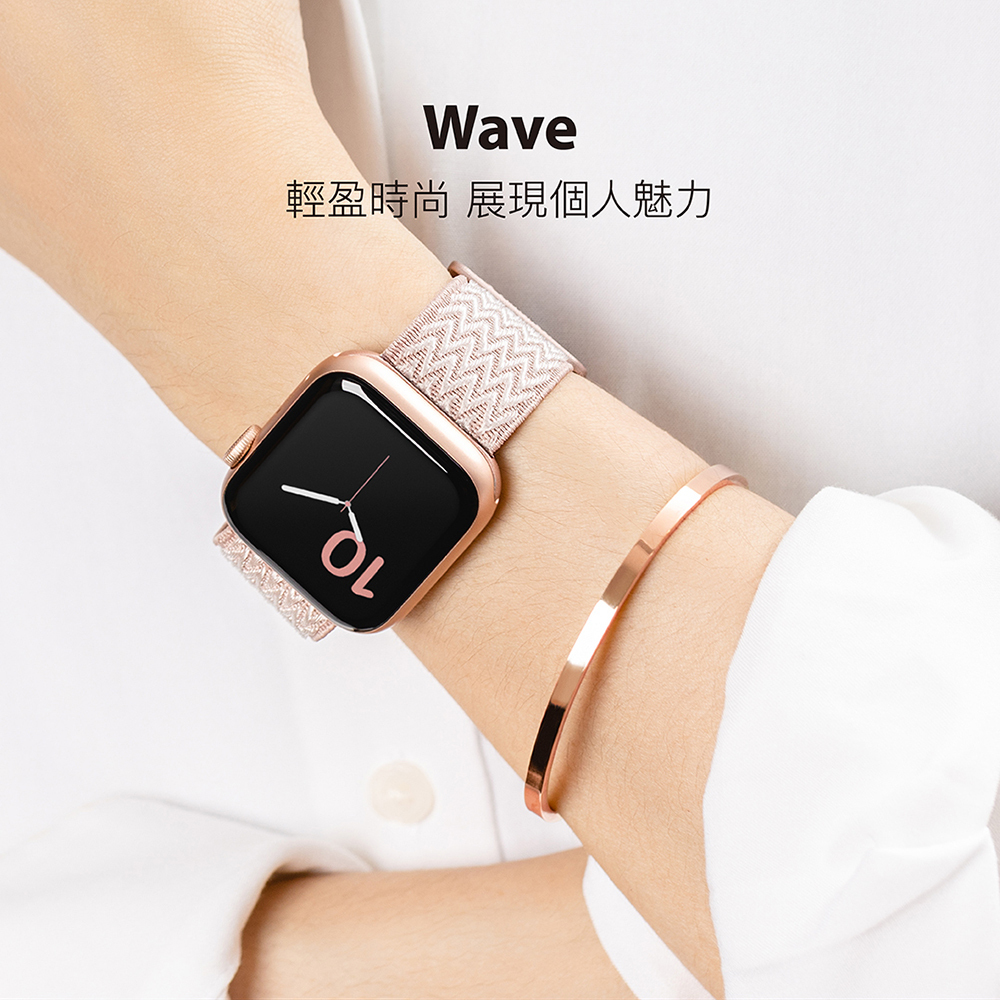 Wave彈性尼龍錶環採用波浪紋設計,展現海洋的自然紋理,更具運動錶環的特性。嚴選高彈性尼龍編織面料,擁有高透性及快乾特性且易於清潔,可自由調整長度,穿戴起來非常舒適並貼合手腕。