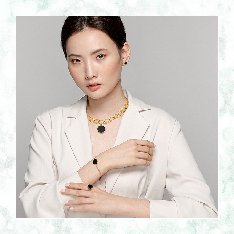 將高質墨翡搭配冰糯種白翡或白琺瑯運用於基礎幾何系列裡的多款造型,成為此系列的時尚基調。讓珠寶貫穿極簡的歸零美學再變化出無色生萬化的焦點珠寶。搶眼又和諧的設計,創造出時尚都會女性的堅毅和柔美!