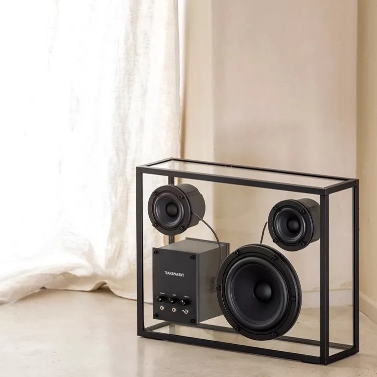 Transparent 透明音響黑色以獨特的鋼化玻璃和鋁製單框結構呈現出透明一目瞭然的內部細節,展示一種源於對斯堪地那維亞簡約和功能主義熱愛的設計方法。