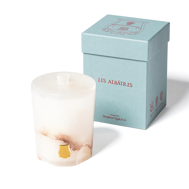 這款香氣搭配的容器是從單一結晶體形成的雪花石膏,其細膩透光的質地自六世紀以來就受到雕刻工匠們推崇,製作雪花石膏的過程絕非易事,需要十足的細心與耐心,每個容器上形象各異,如同血管般的褐色線條說明了每一個雪花石皆是獨一無二的,透過燭光映出的紋理真切清晰,與象徵白晝的《赫墨拉》格外合襯。