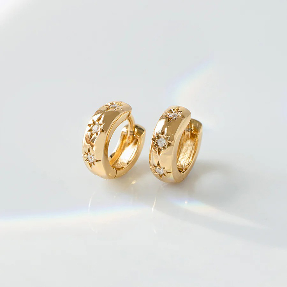 耳環材質:銅鍍14K金、鋯石、925純銀耳針