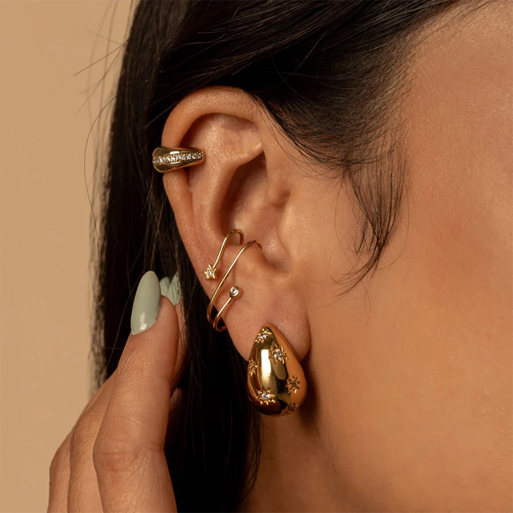 耳環材質:銅鍍14K金、鋯石、925純銀耳針