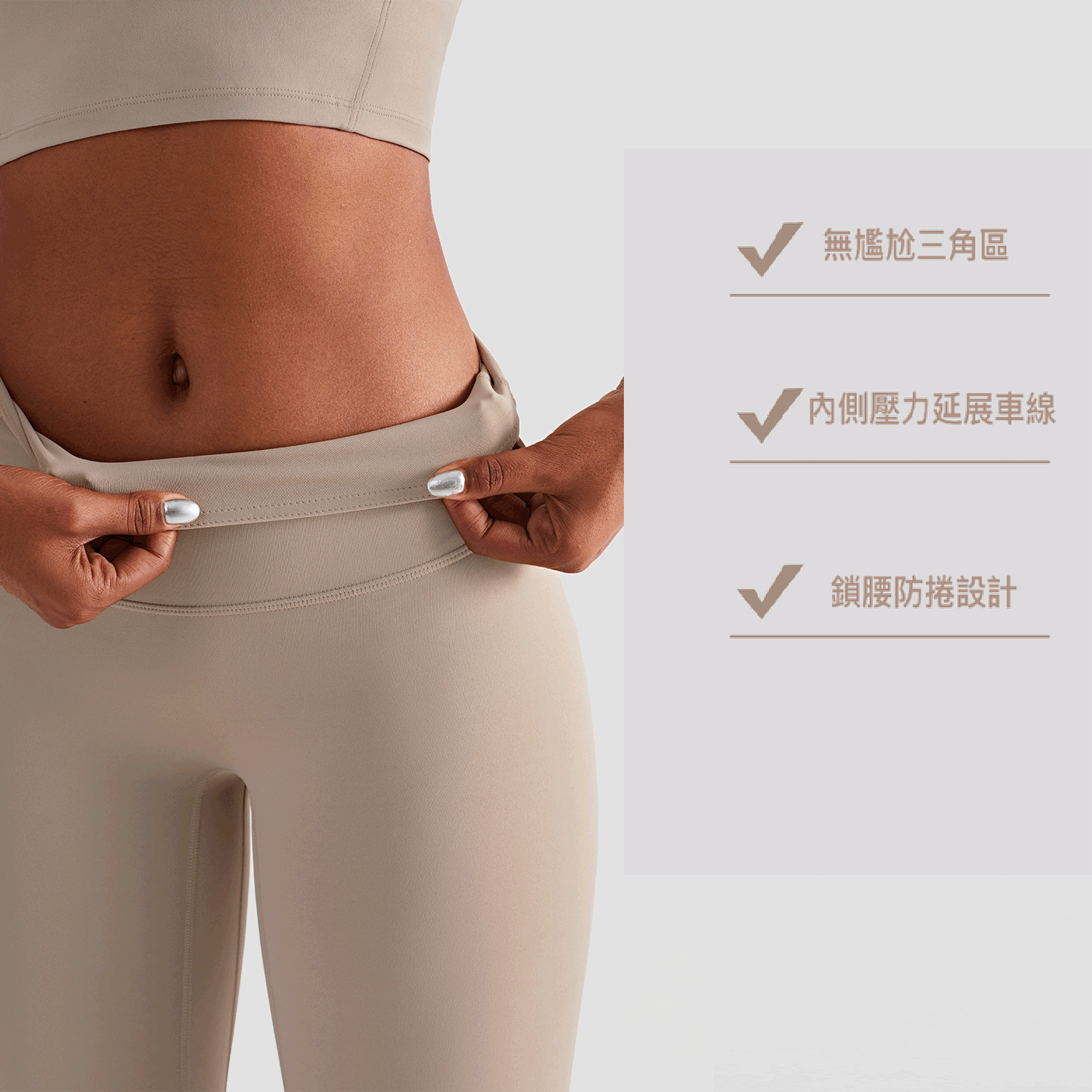 『裸感系列』極高腰款,鎖腰防捲腰頭,透氣吸汗
