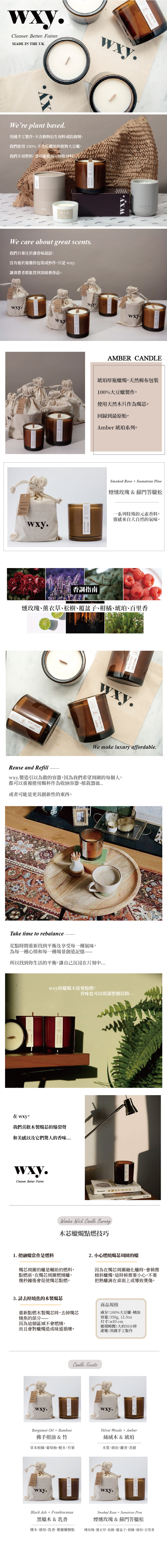 品名:wxy Amber大豆蠟燭(L)-煙燻玫瑰 & 蘇門答臘松