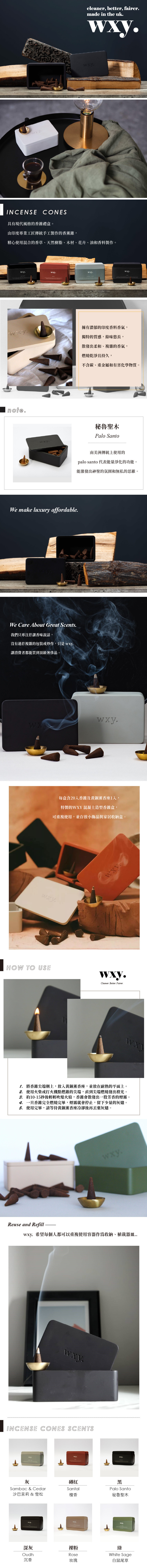 - 由印度專業工匠傳統手工製作的香薰錐, 精心使用混合的香草、天然樹脂、木材、花卉、油和香料製作,擁有濃郁的印度香料香氛和獨特的質感,餘味悠長,散發出柔和、複雜的香氣,燃燒乾淨且持久,香錐不含木炭、重金屬和有害化學物質。