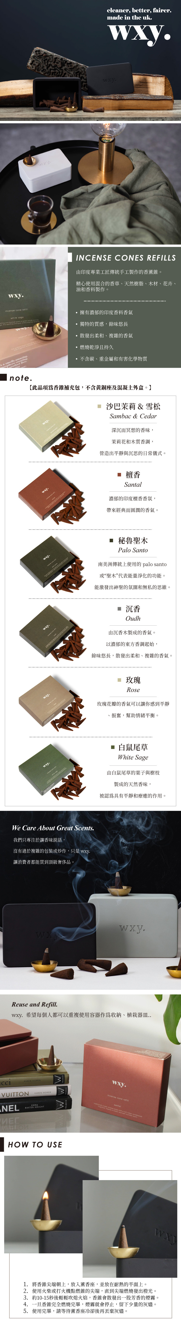 -INCENSE CONES REFILL: 精心使用混合的香草、天然樹脂、木材、花卉、油和香料製作,擁有濃郁的印度香料香氛和獨特的質感