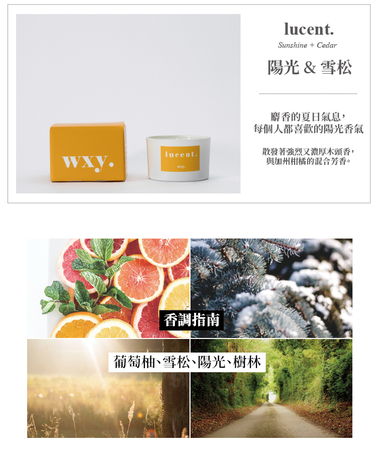 品名:wxy 經典蠟燭 (S)- lucent. 陽光 & 雪松