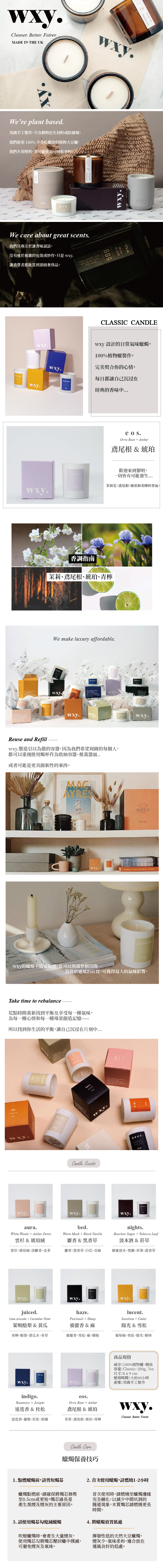 -wxy 設計的日常氣味蠟燭,100%植物蠟製作,完美契合你的心情,每日都讓自己沉浸在經典的香味中...