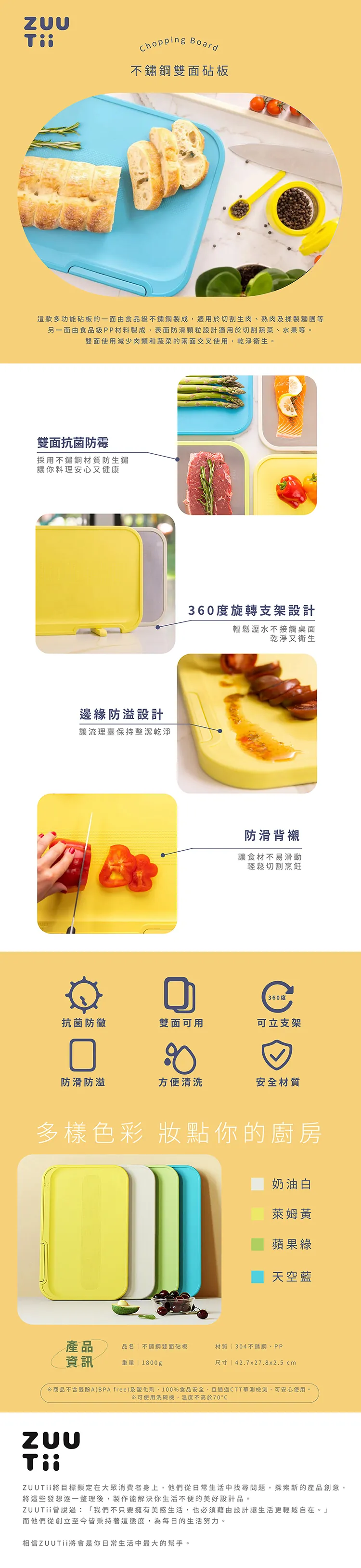 這款多功能砧板的一面由食品級不鏽鋼製成,適用於切割生肉、熟肉及揉製麵團等
