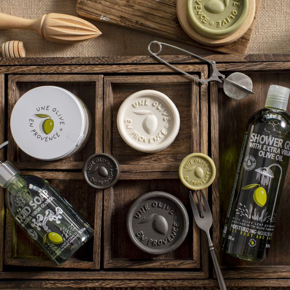 一顆橄欖 UNE OLIVE EN PROVENCE,來自普羅旺斯的阿爾皮耶 ALPILLES 山脈心臟地帶,300年橄欖莊園,以革命的精神及思維,將橄欖樹的完整植株包含冷壓初榨橄欖油、橄欖花、橄欖角鯊烷、橄欖果核、橄欖葉加入了古老的馬賽皂中,打造不論質地、香氣與精純成分都不同凡響的全系列橄欖美容保養品牌。