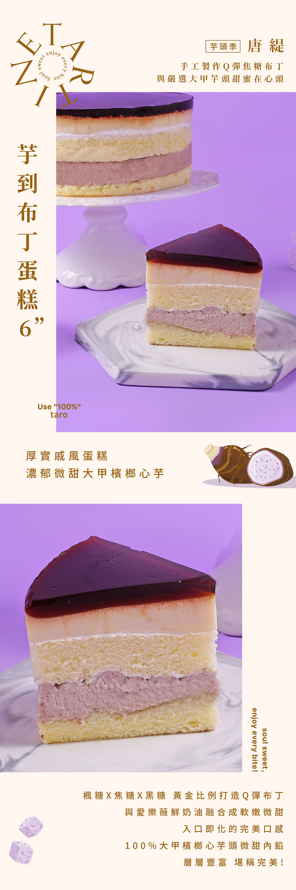 ㄉㄨㄞ到切下去可能會反彈的Q嫩布丁!香濃不膩的烤式芋泥夾心餡,搭配香草蛋糕體,長輩、孩子都愛的點心、生日蛋糕!