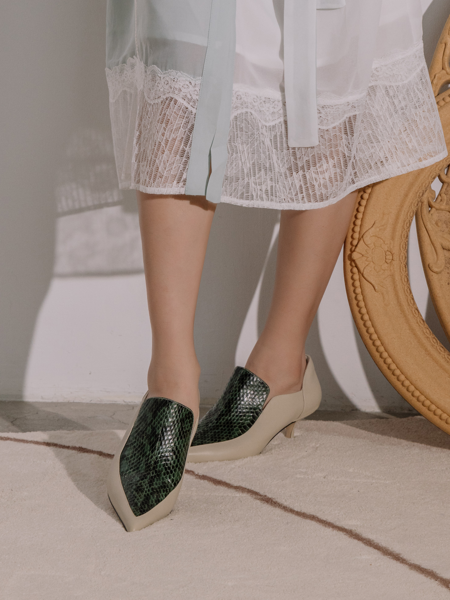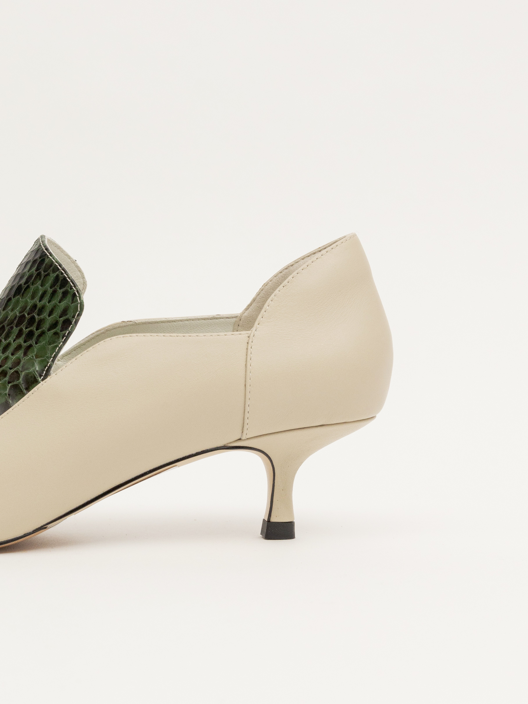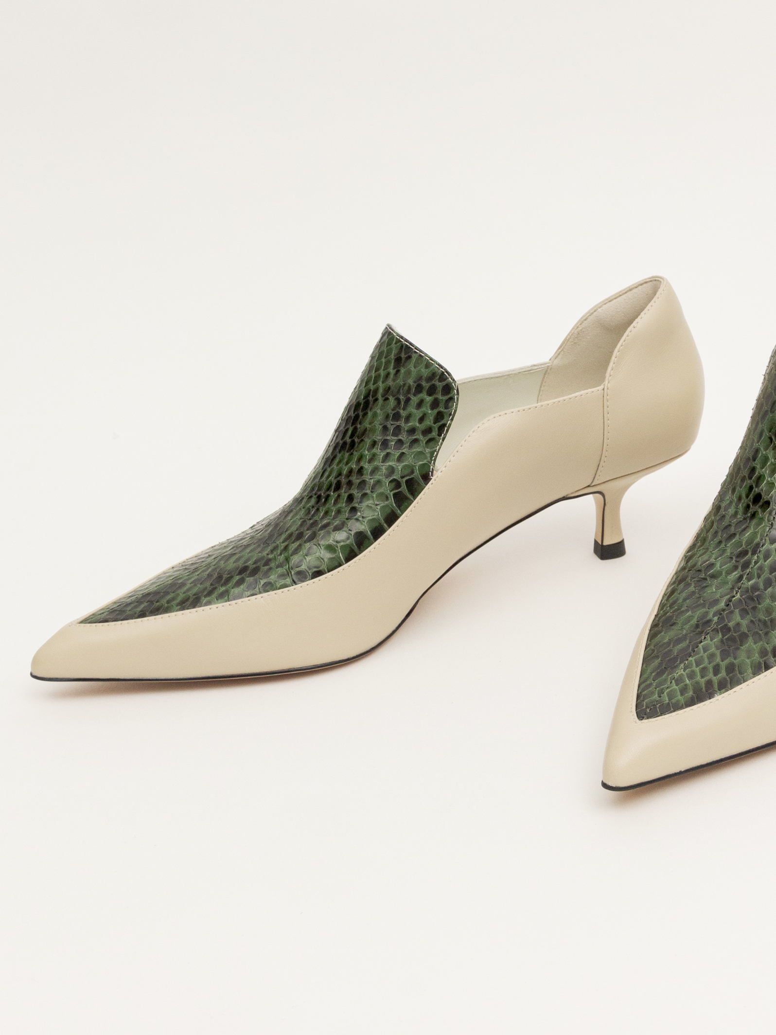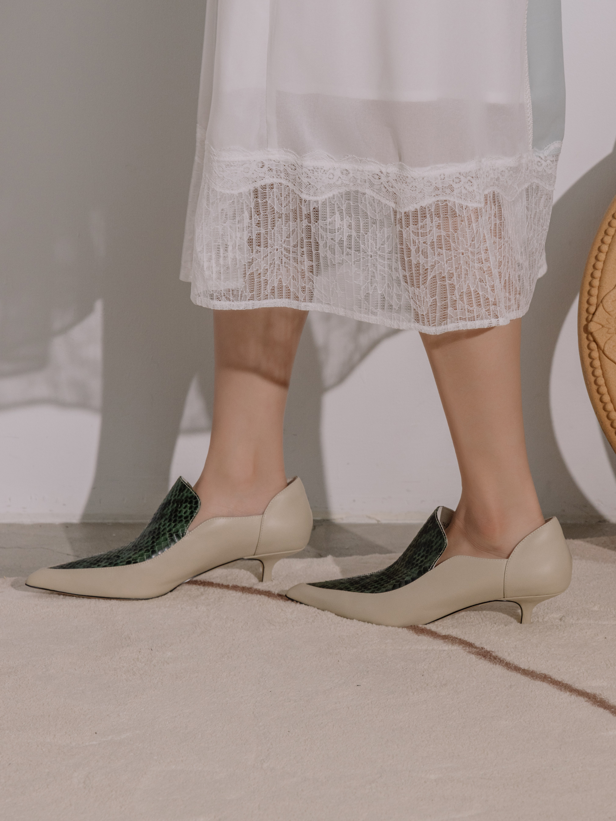 NO216-奢華壓紋皮-尖頭細跟鞋-墨綠
