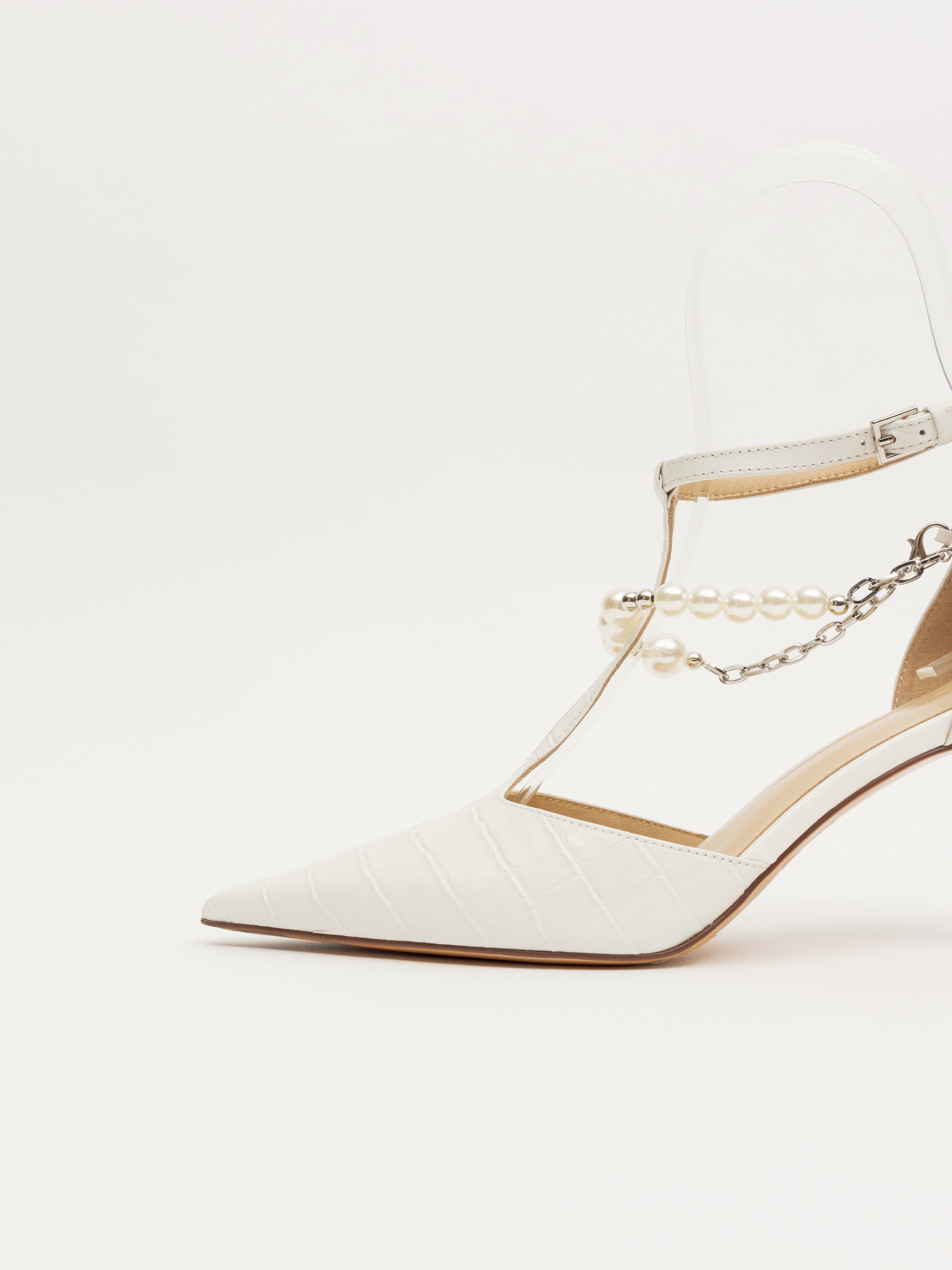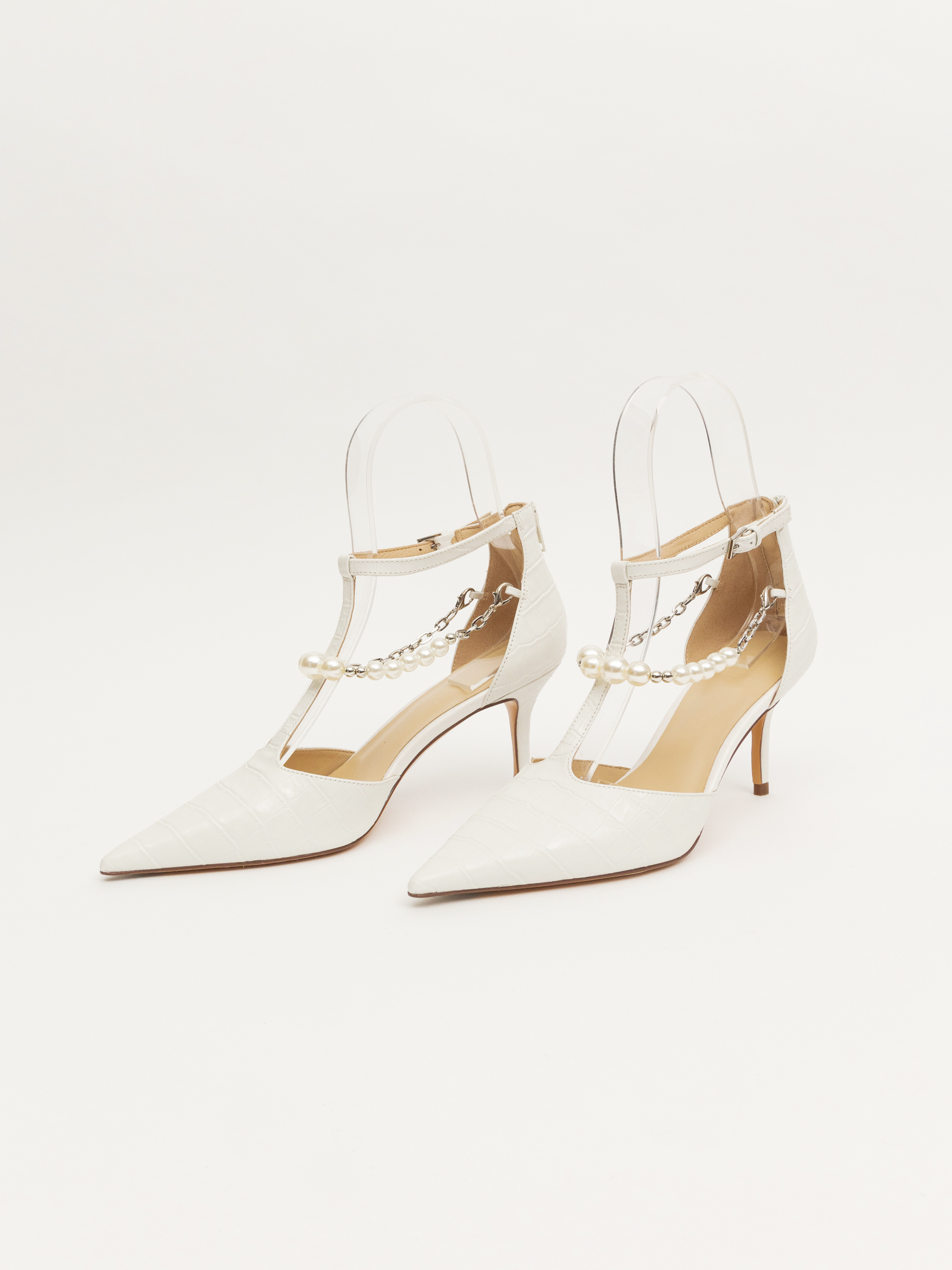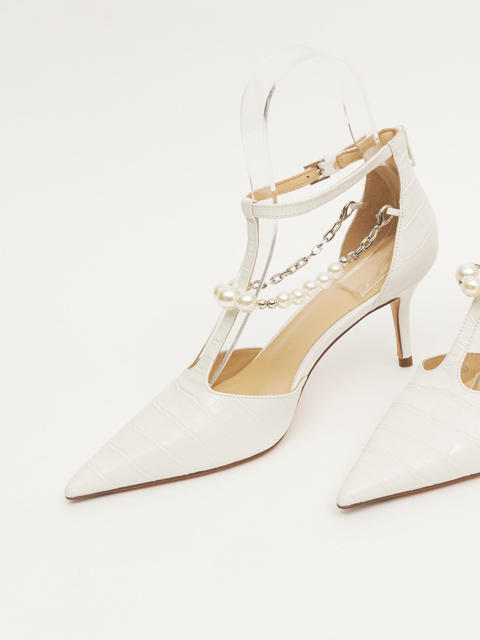NO216-拆卸珍珠-尖頭細高跟-婚宴鞋-白