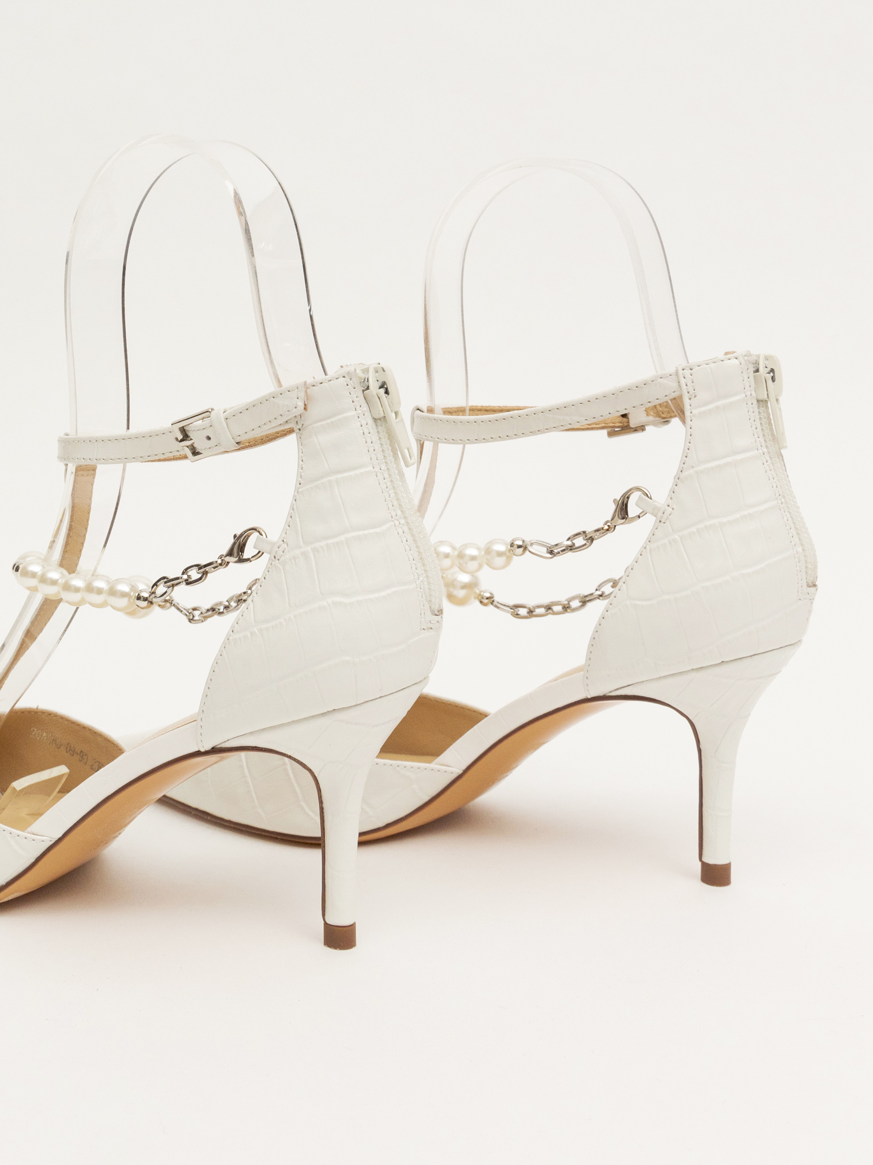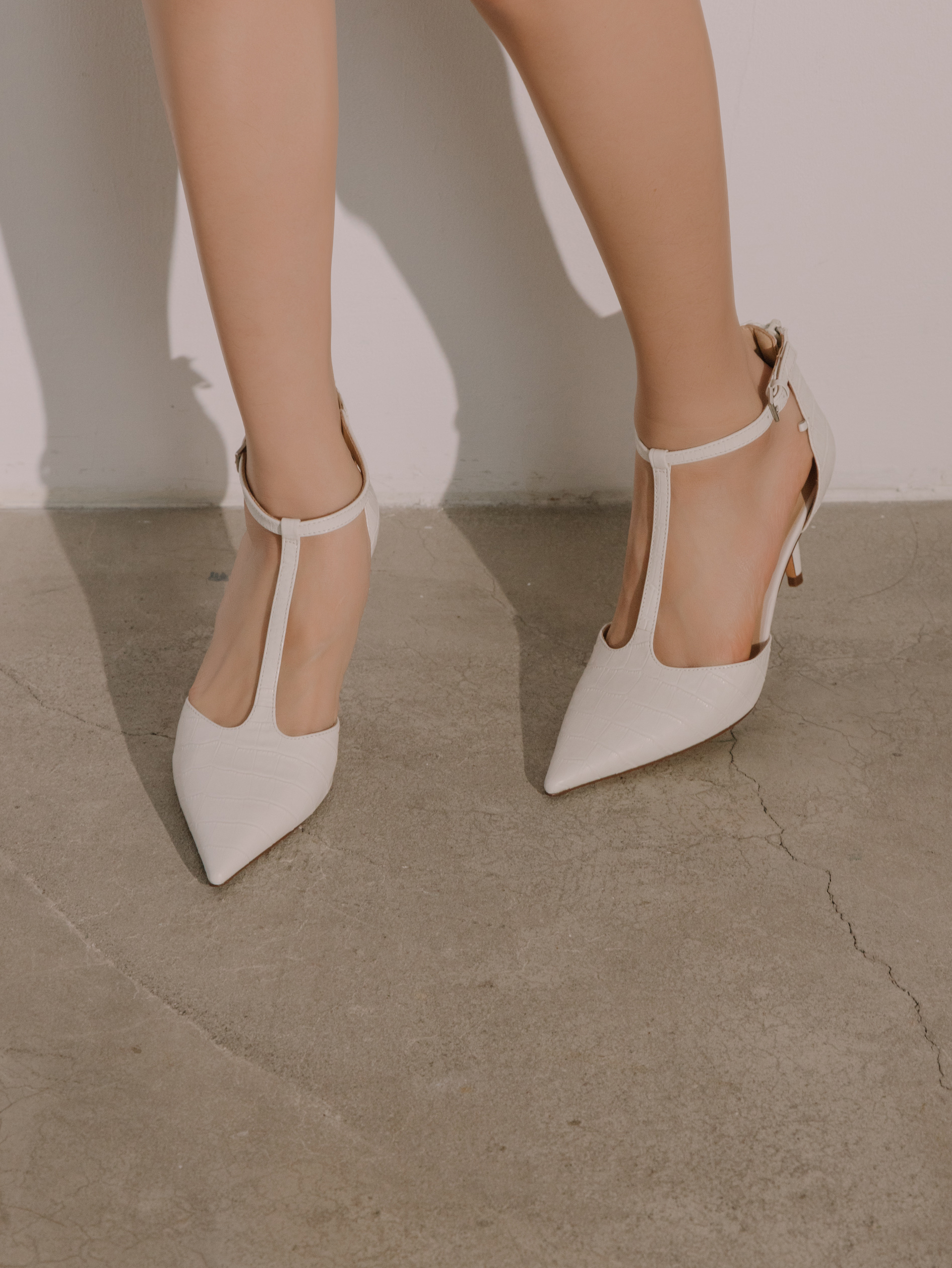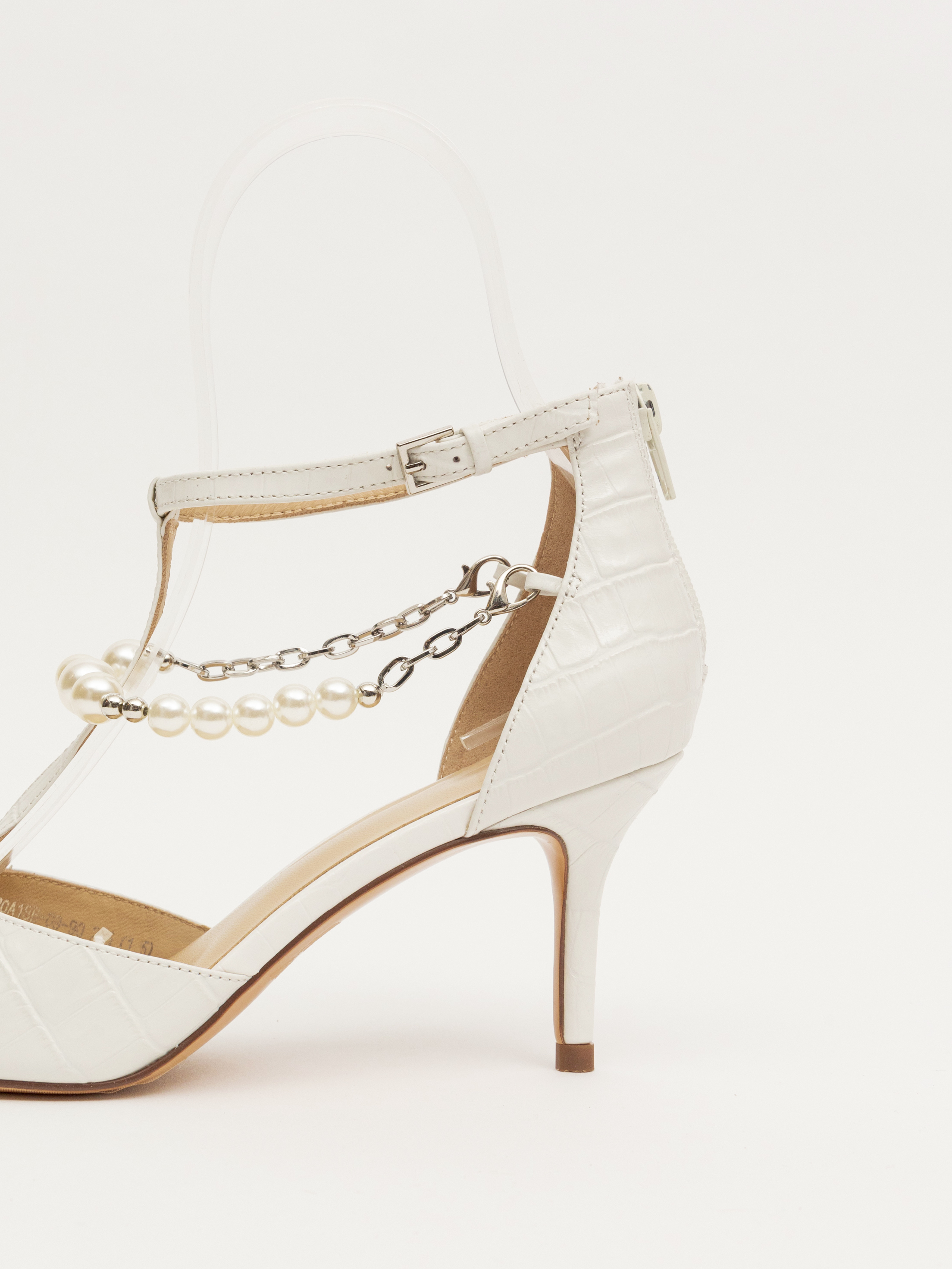 NO216-拆卸珍珠-尖頭細高跟-婚宴鞋-白