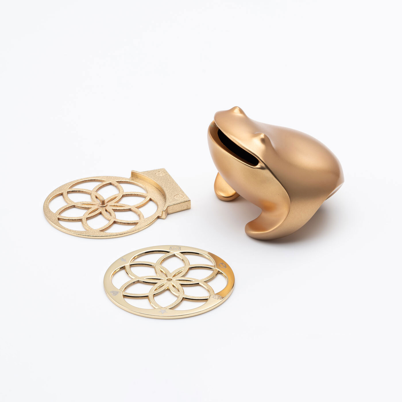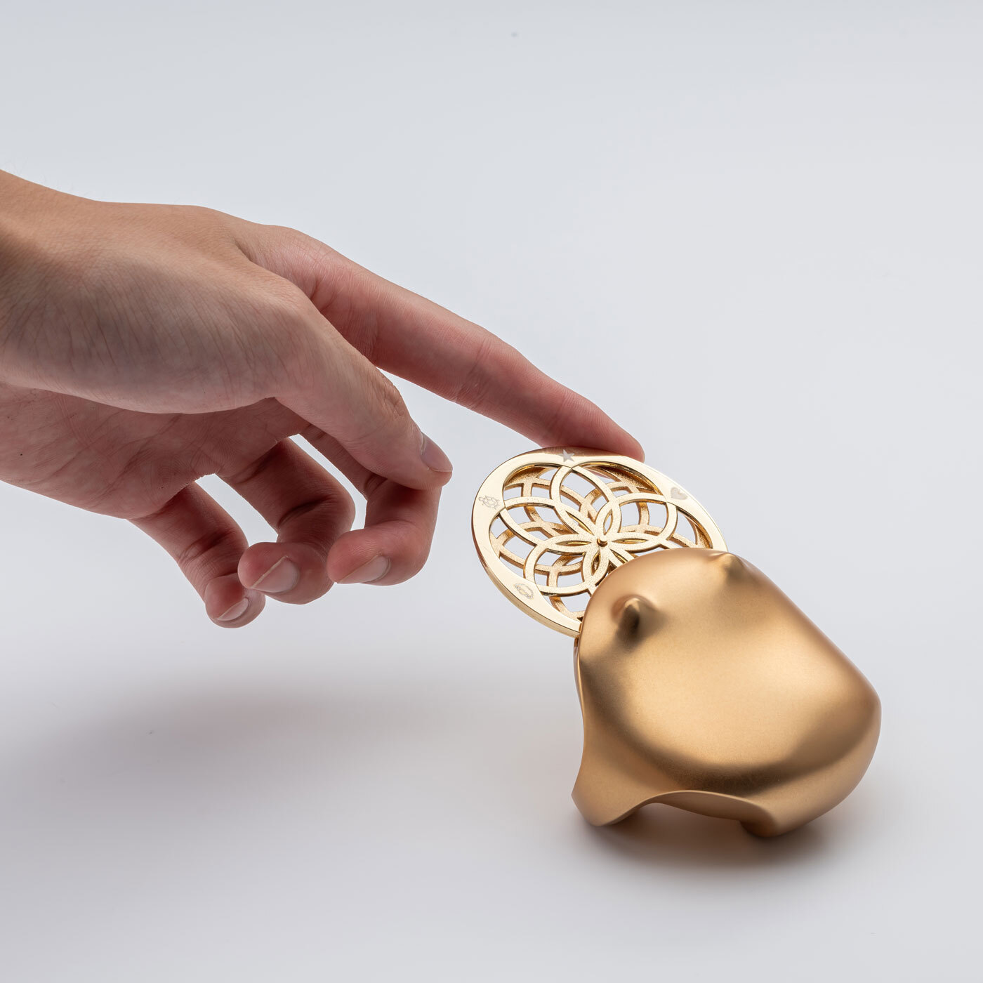-千財錢滾錢的設計,啟發自世界文化典故裡,富有能量的生命之花紋路,兩層相疊。