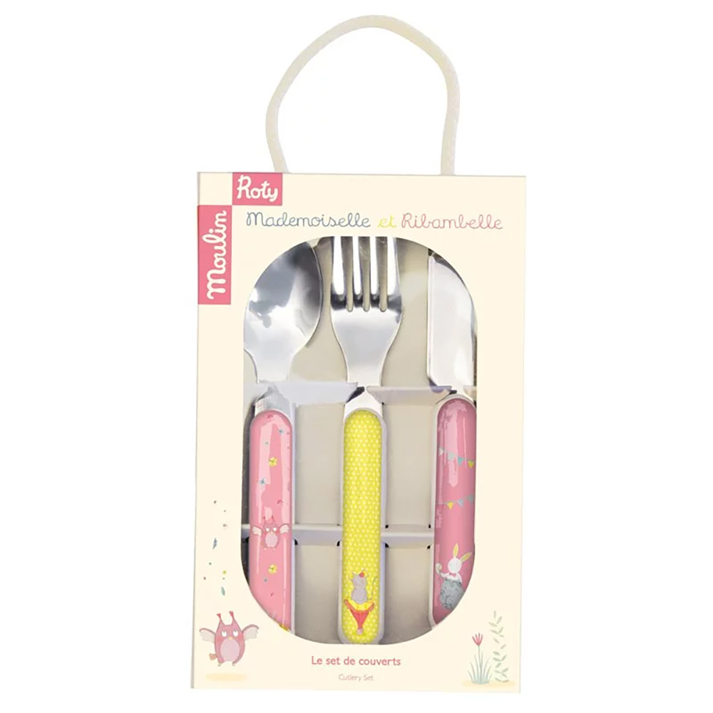法國 Moulin Roty 粉戀寶寶安全快樂餐具禮盒組 (刀、叉、湯匙三件組)