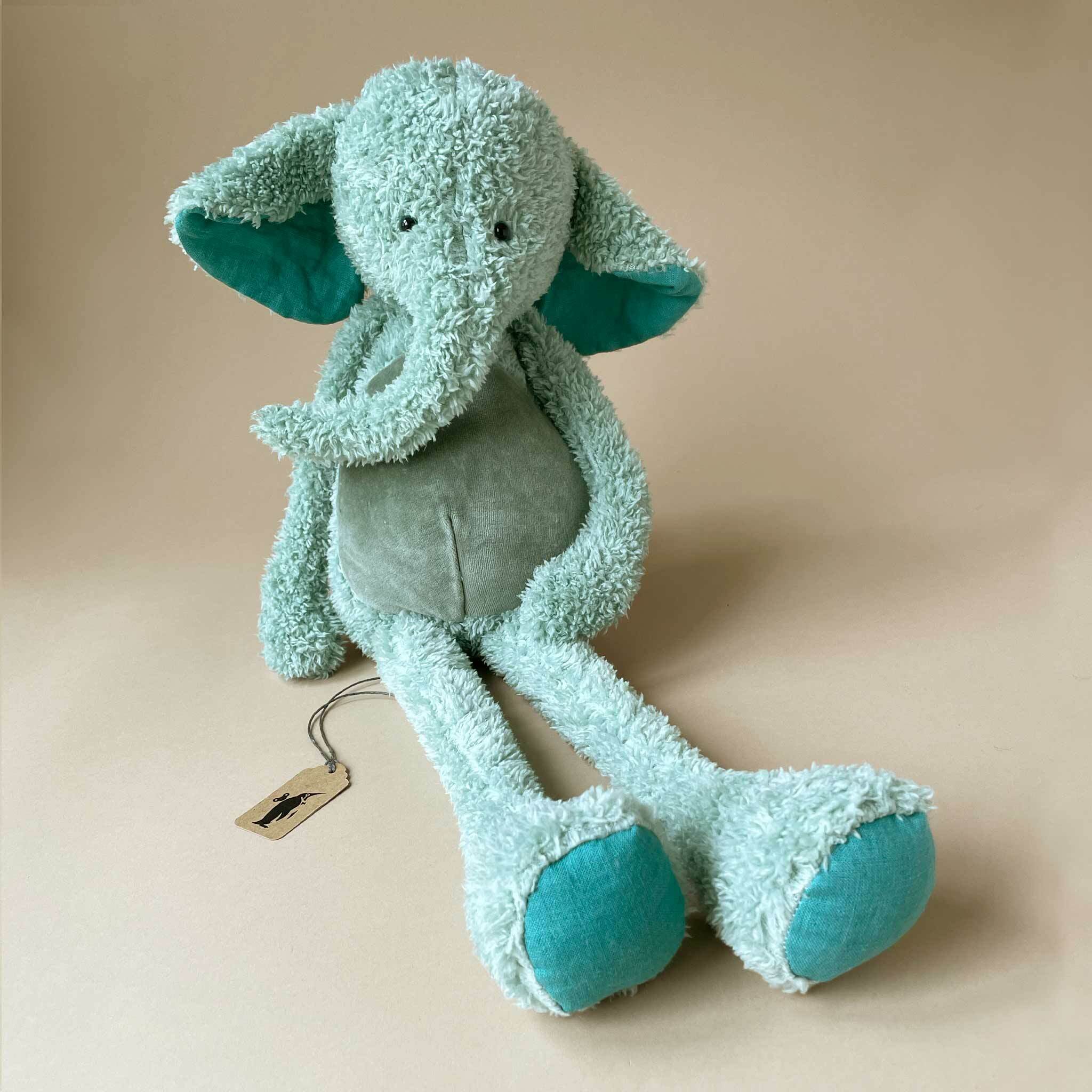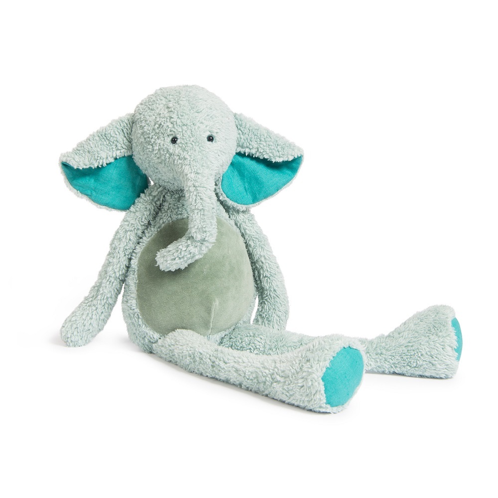 Moulin Roty 童話藍色大象玩偶。這是大象,長著一張可愛的臉,長長的四肢和超柔軟的皮毛,讓他非常可愛!。他是一個57cm的藍色毛皮毛絨玩具。