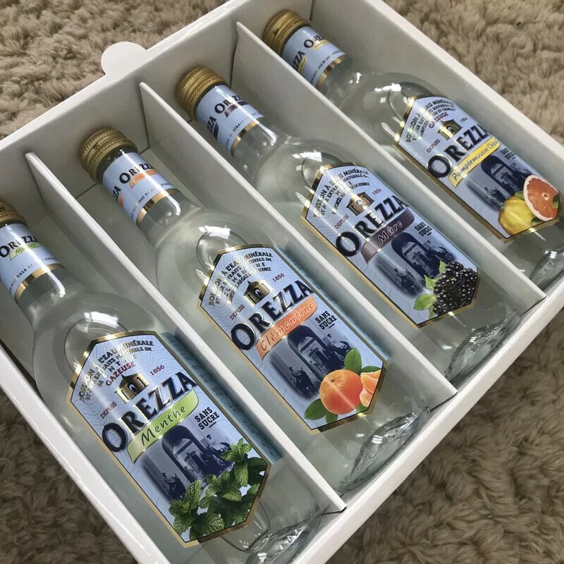 *限量的香氛系列分別自黑莓、小柑橘、薄荷、粉紅葡萄柚中萃取0.1%的精華,融入OREZZA天然氣泡礦泉水中,讓你每一口都有新奇的饗宴。