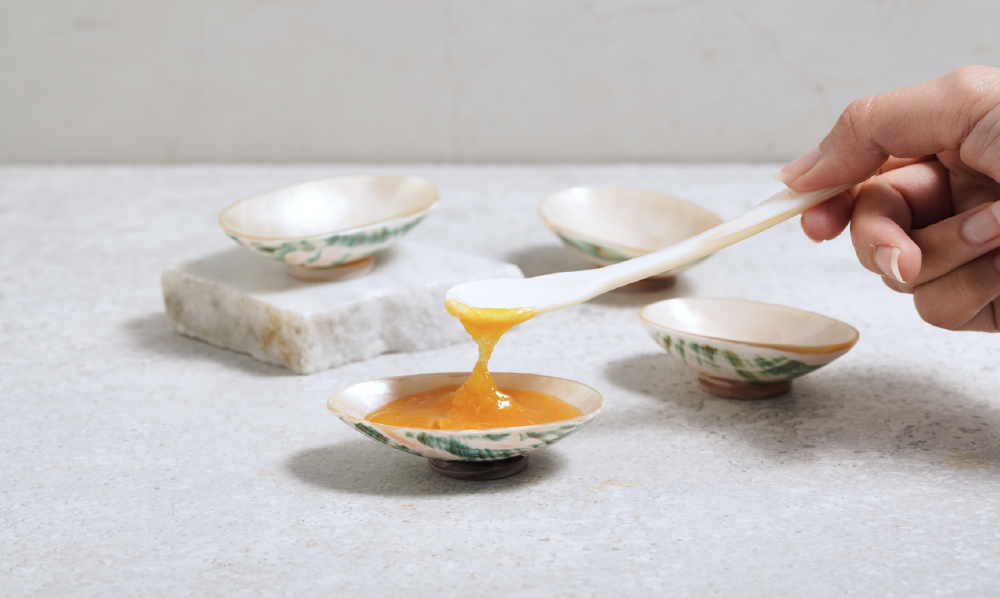 來自澳洲的珍珠母貝,殼內斑斕細緻的光澤 , 都源於天然母貝的透明虹膜 , 享用精緻食物的最佳配角 .
