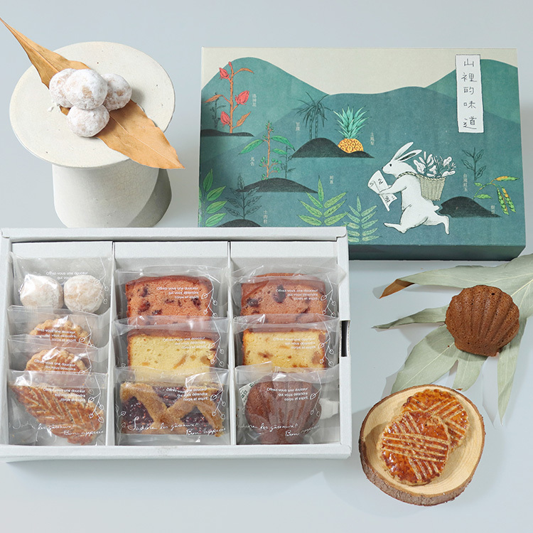 土肉桂林茲 1pc、馬告沙布列 2pcs、紫蘇餅乾 1pc、樹豆雪球 1pc