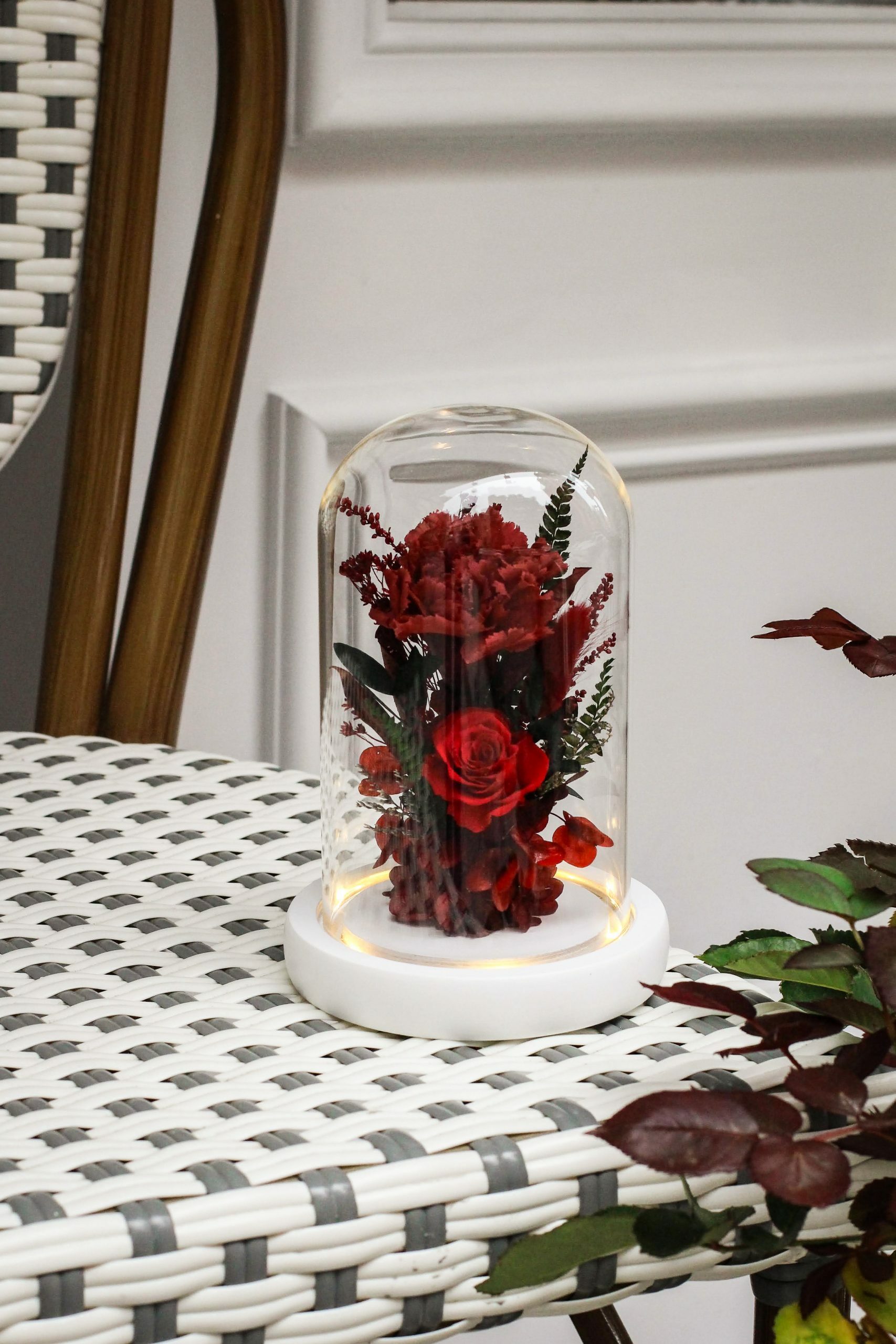 白色花藝-康乃馨永生玻璃盅夜燈-復古暖紅