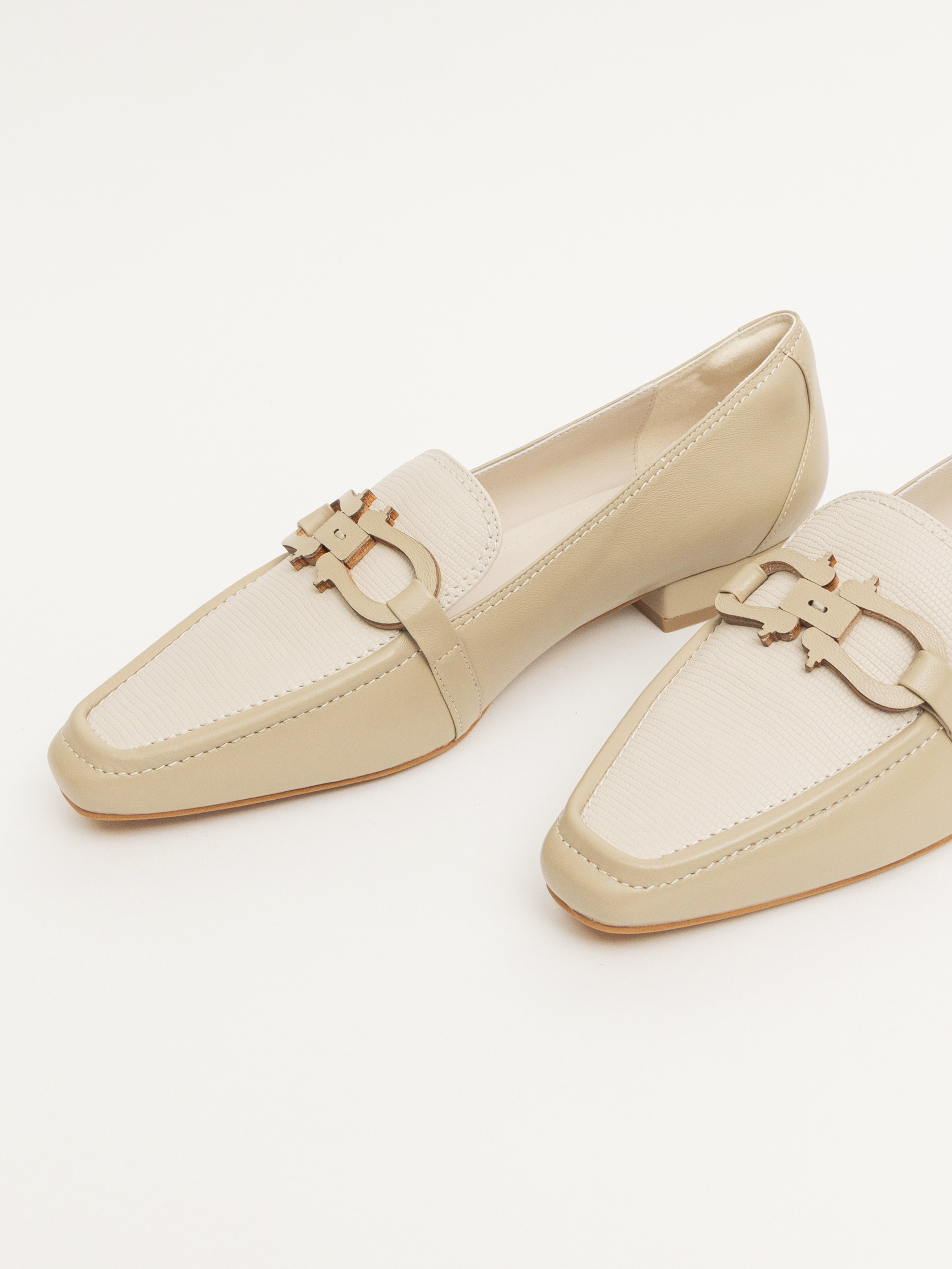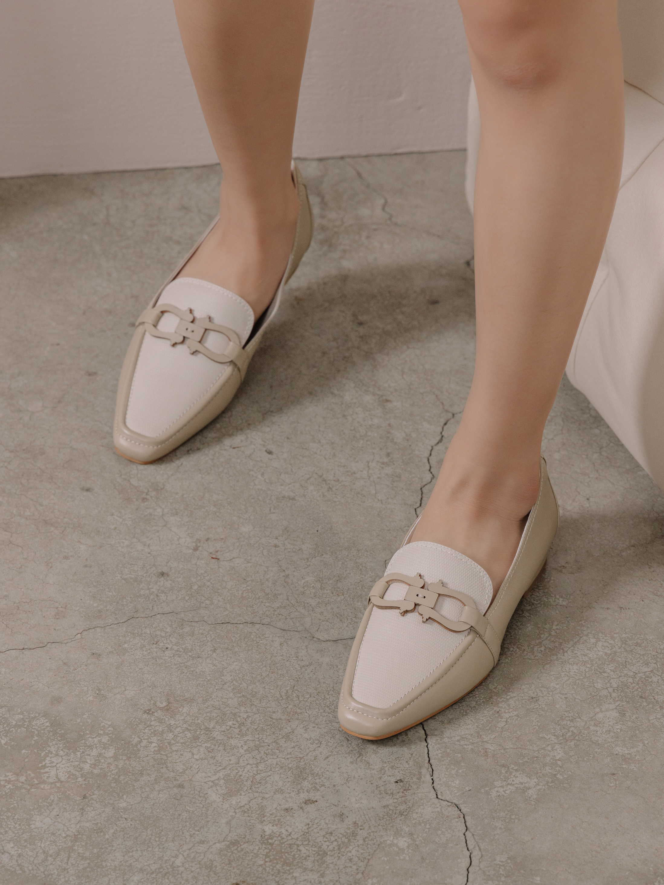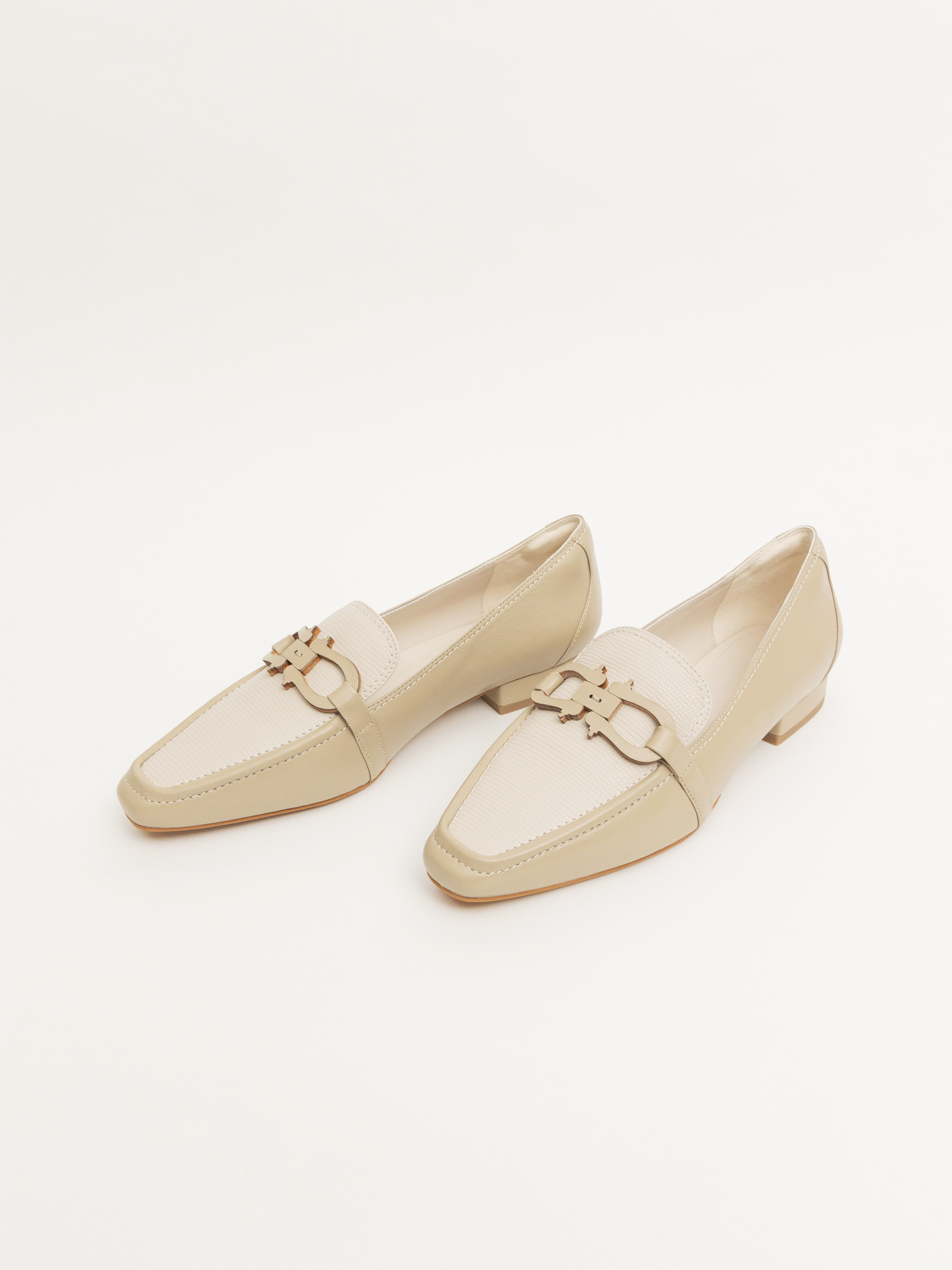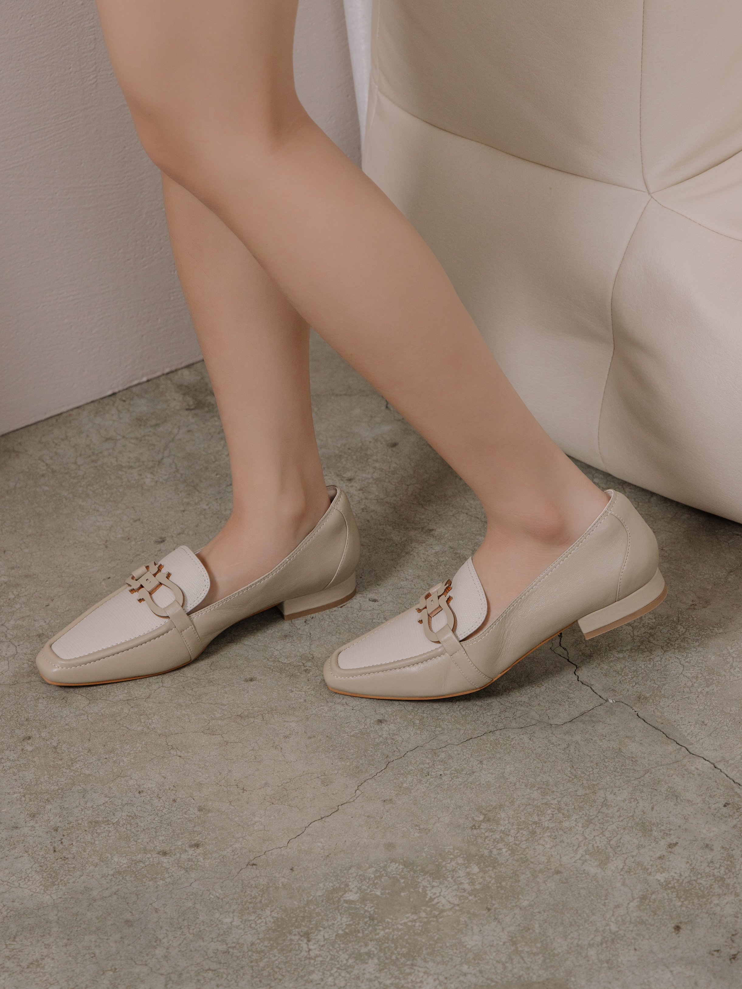 淺卡 卡其色羊皮 冰白小蜥蜴紋牛皮