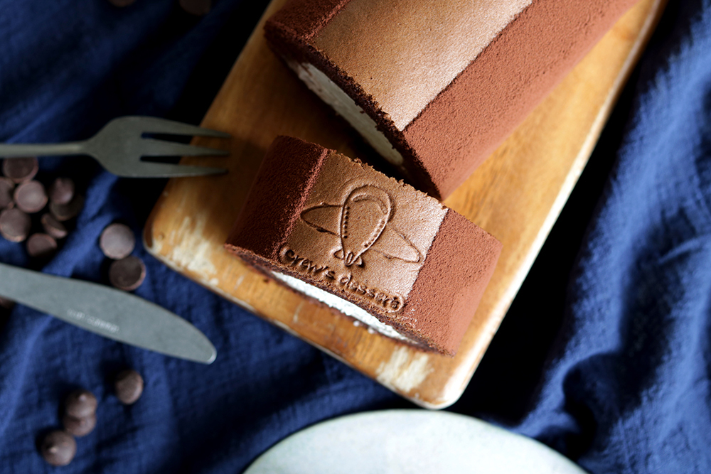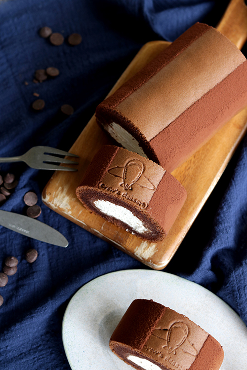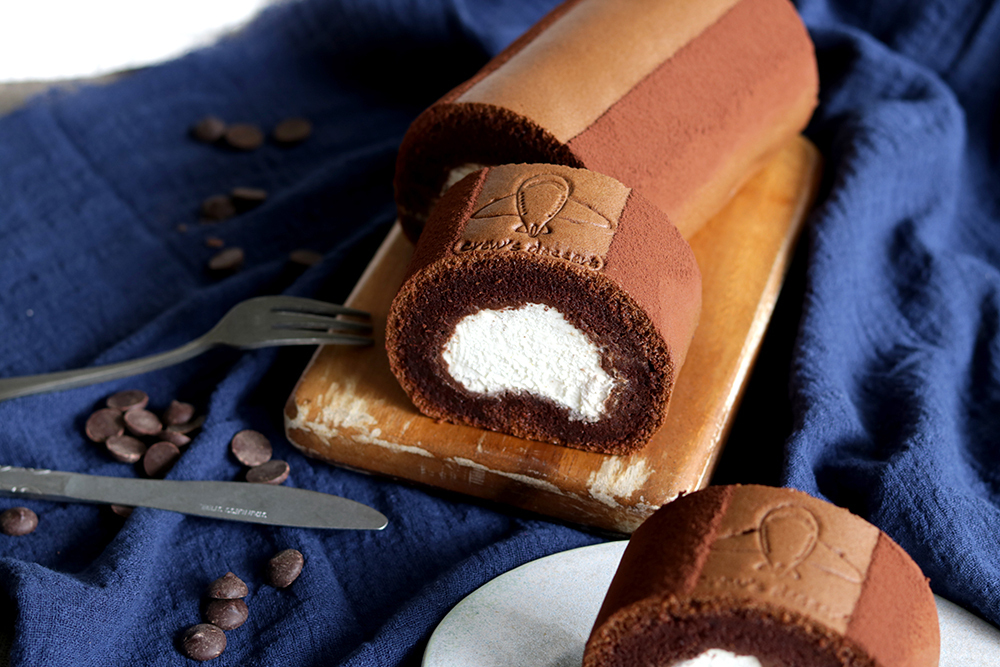 法國頂級可可粉,苦香氣十足,巧克力戚風蛋糕扎實、細密,