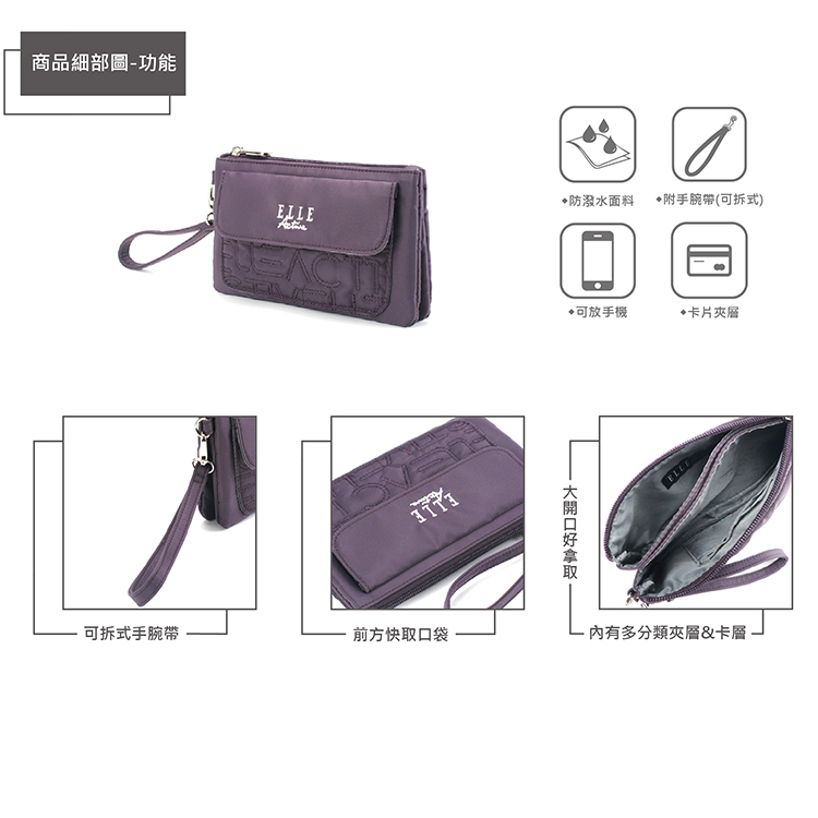 商品品名:【ELLE Active】繁花世界系列-零錢包/手掛包-紫色