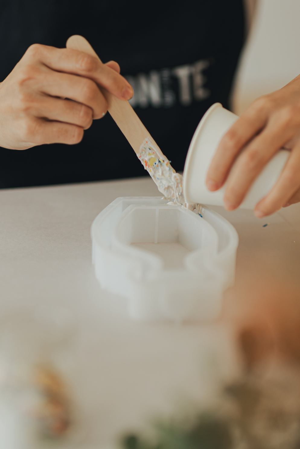 >> 體驗調色、攪拌、灌注、脫模的過程,放慢節奏感受創作樂趣。
